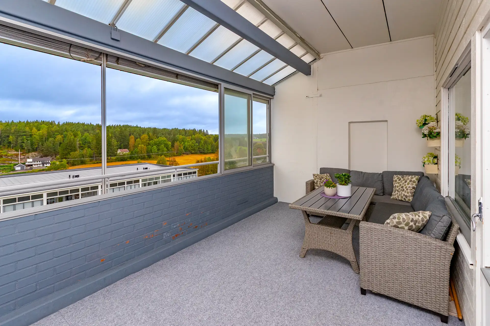 Boligen har balkongdør og Brann- og lydklassifisert entrédør.