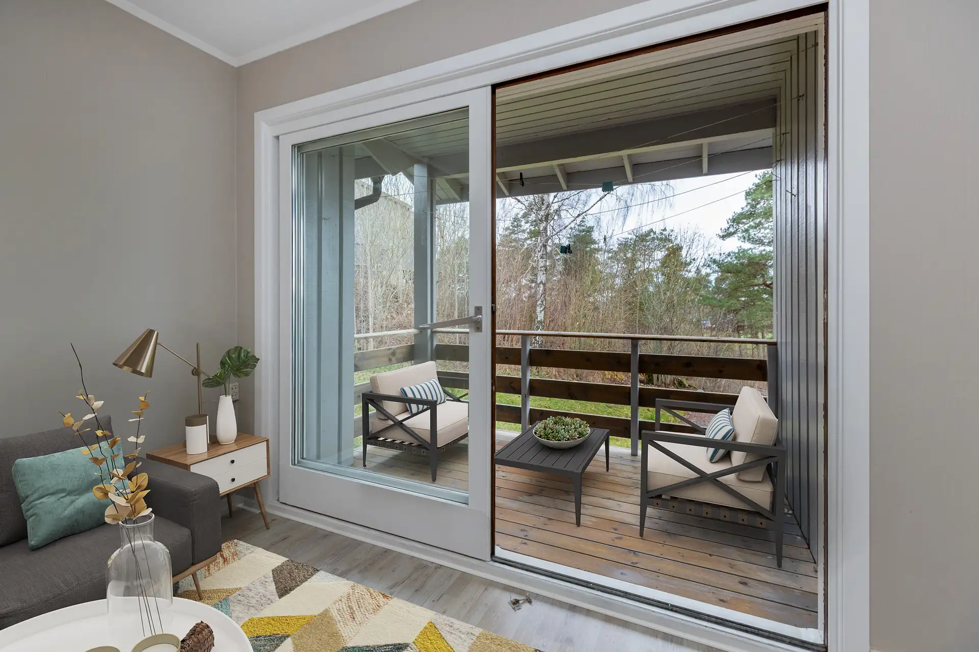 Ytterdør i tre. Brann- og lydklassifisert. Verandadør i tre med isolerglass.