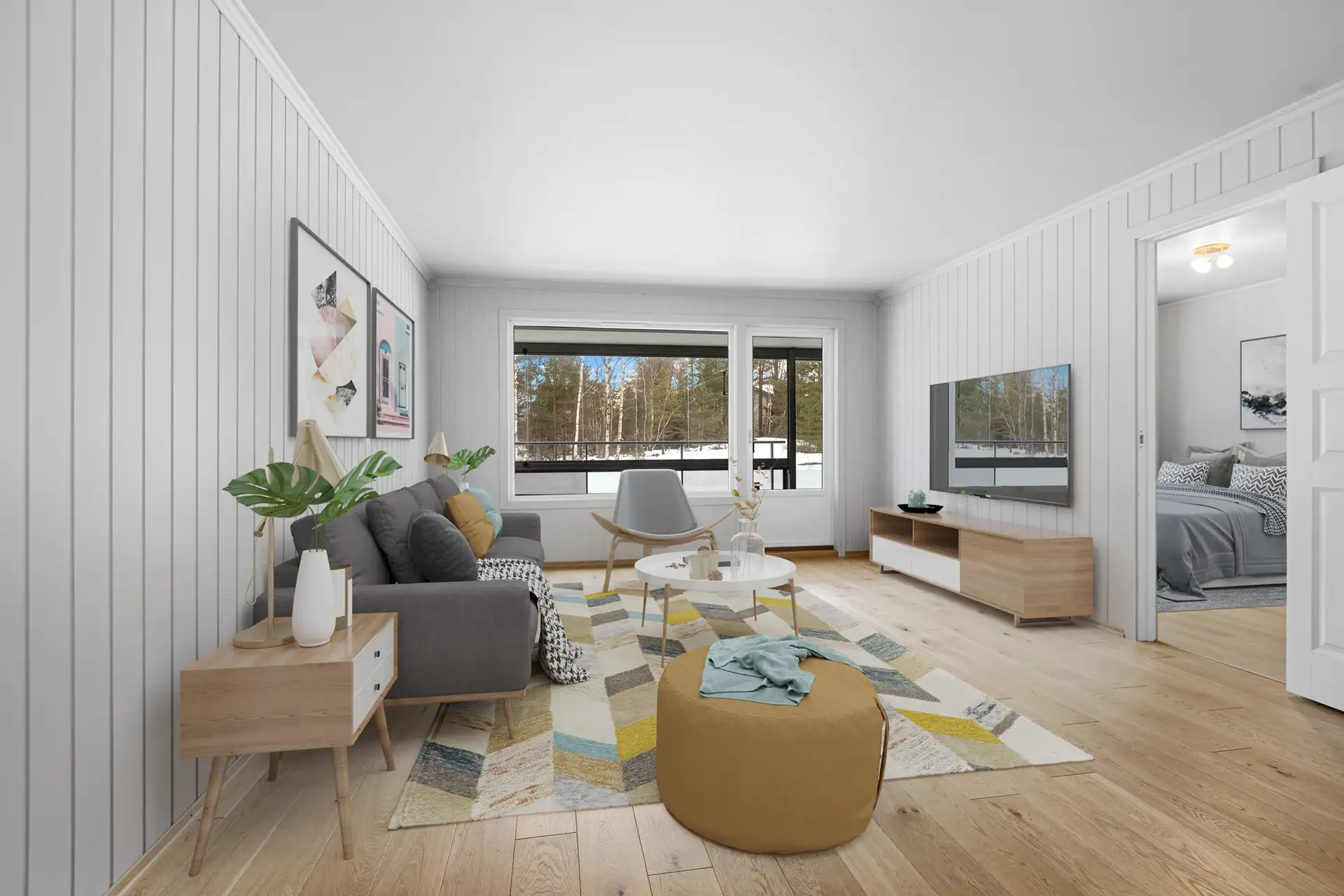 Naturlig plass til både spisestue og en sofagruppe ( 8 av )