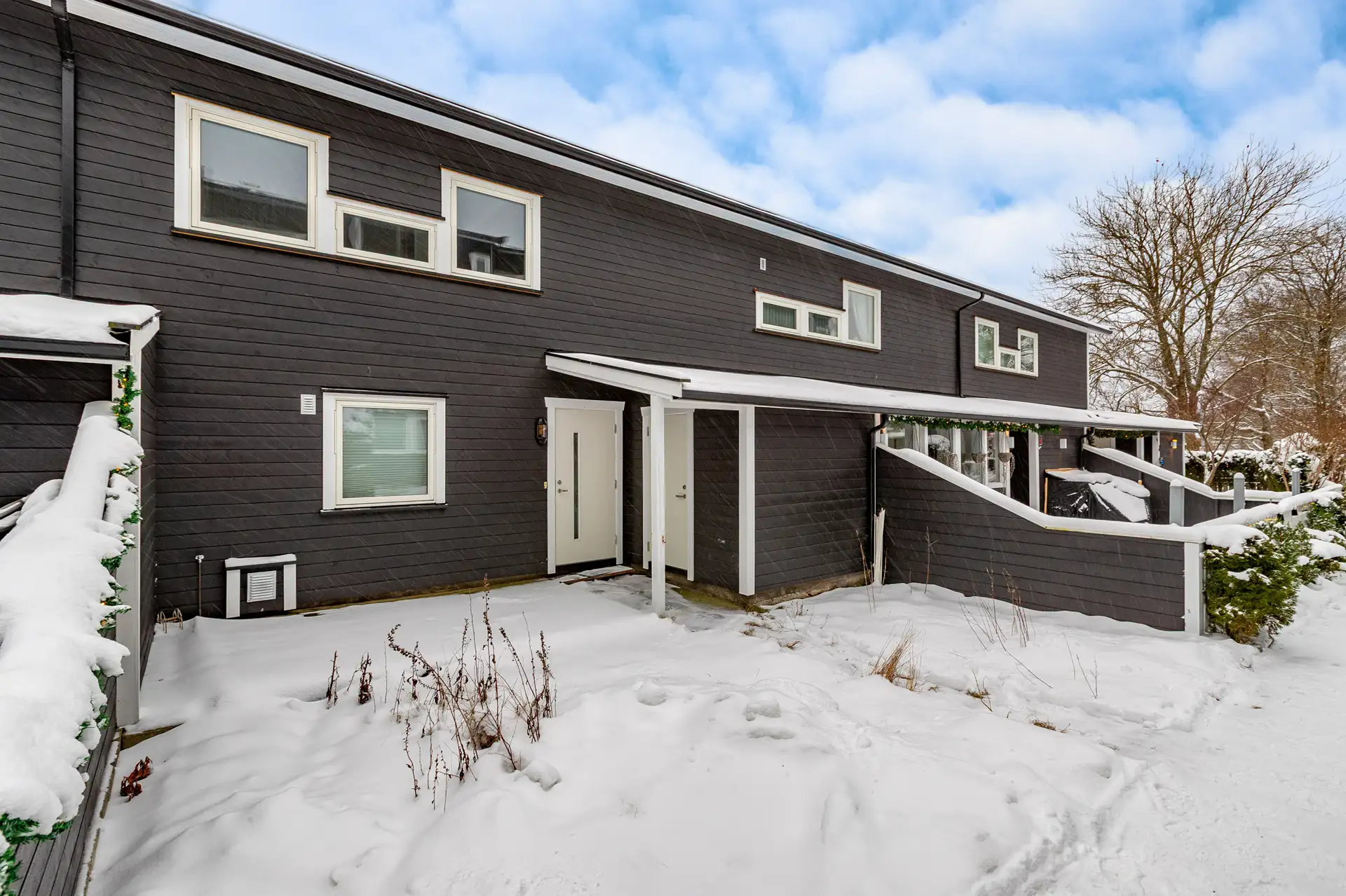 - Balkonger, terrasser og rom under balkonger: Balkonger/terrasse er snødekt og derfor ikke nærmere vurdert.