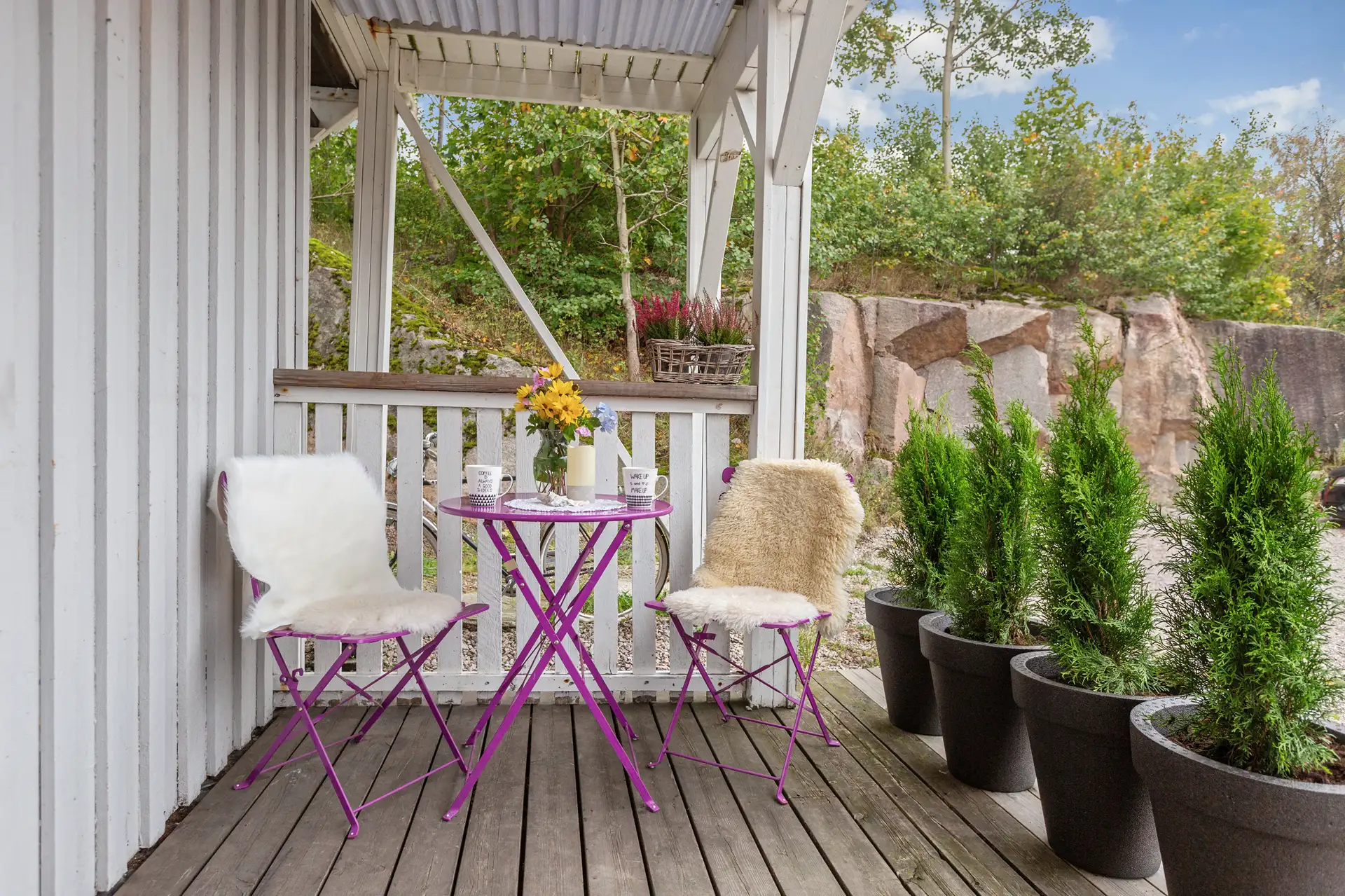 Bygningen har malt hovedytterdør.