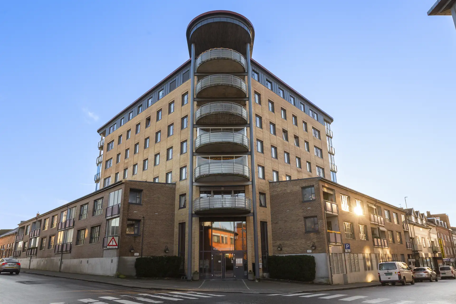 Bygningen har malt balkong dør i tre og brann- og lyd klassifisert entrédør, fra byggetiden.