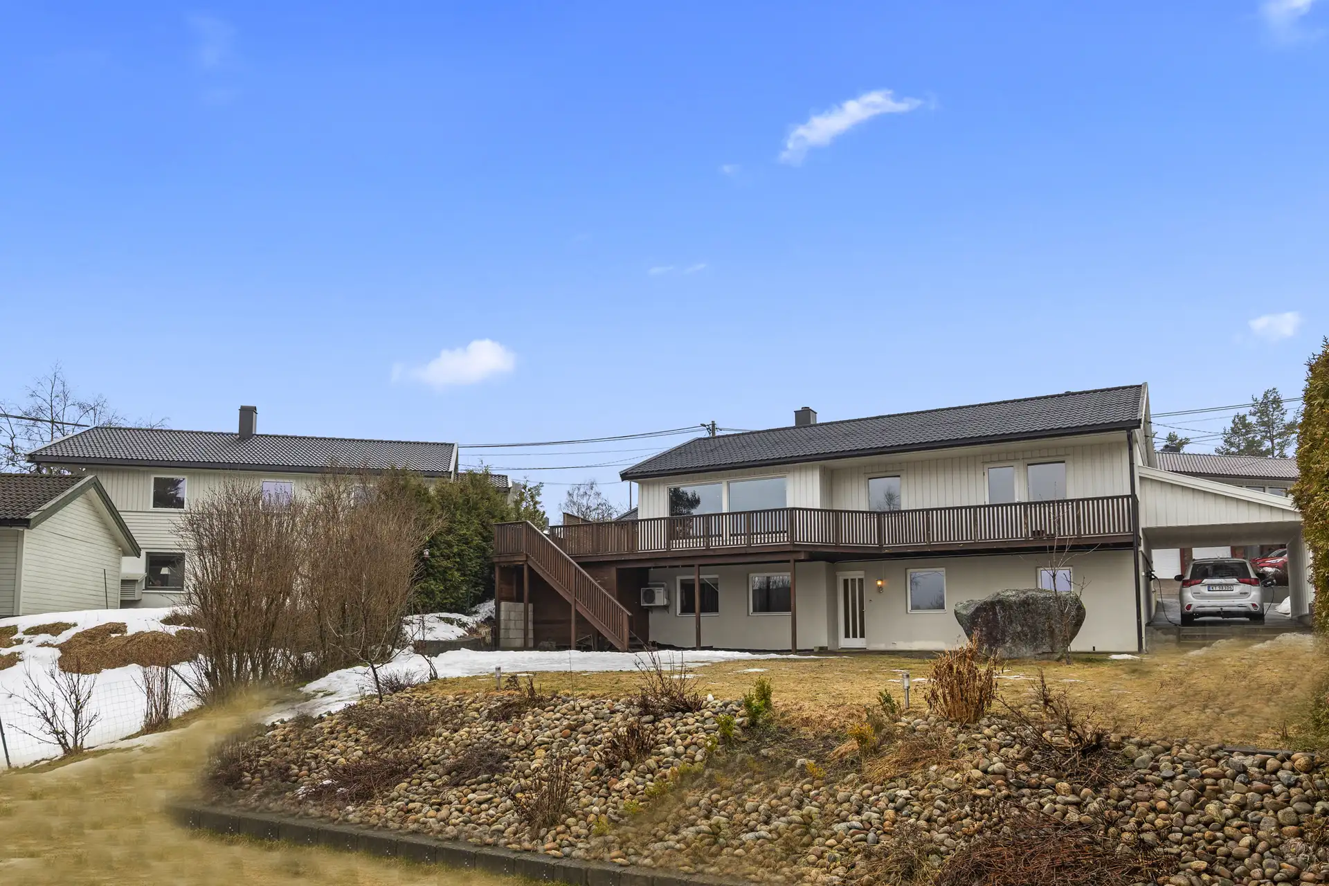 - Håndløper en side mot hage.