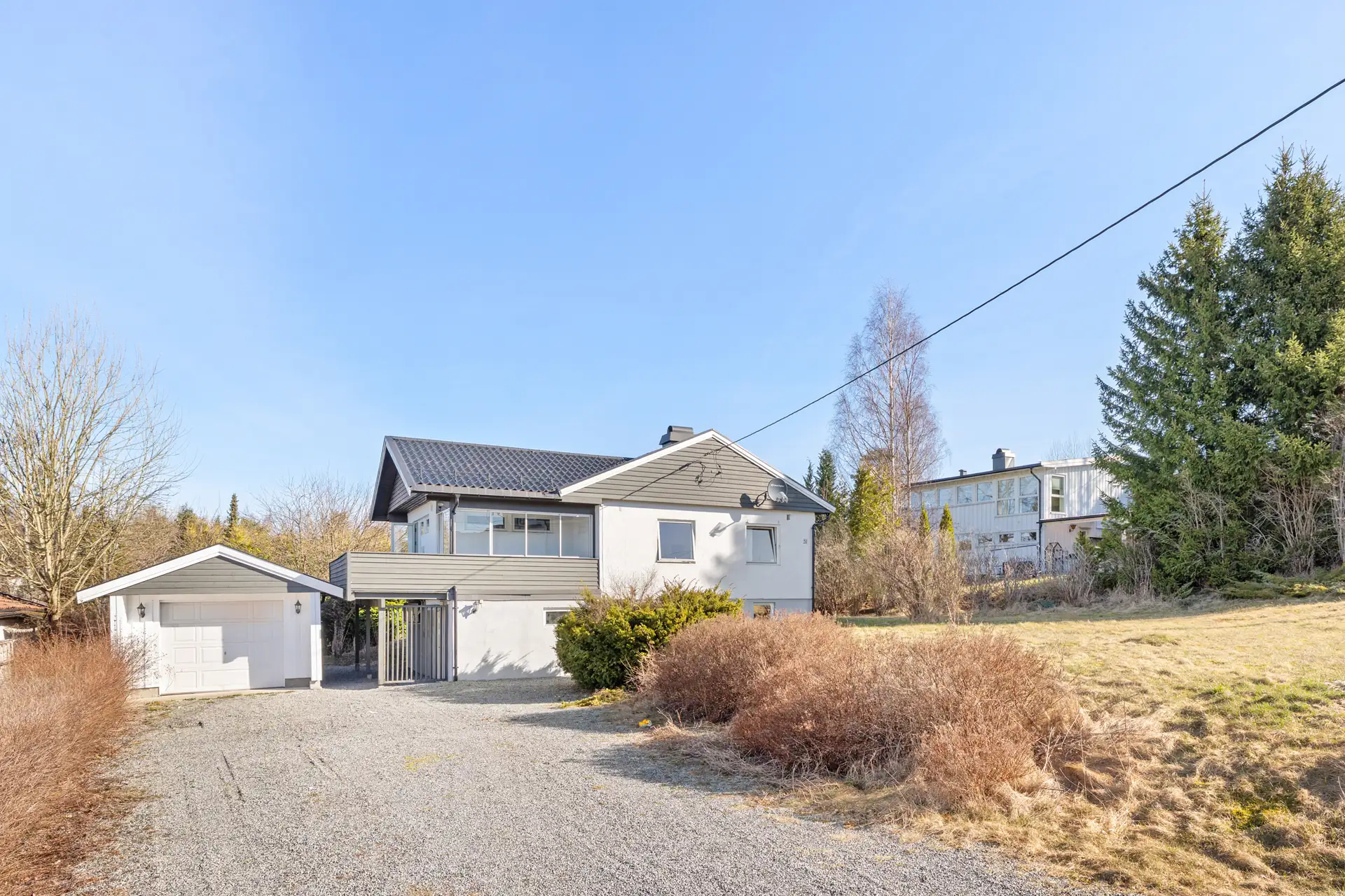 Boligen byr på flere gode uteplasser som gir fine muligheter for både avslapning og sosiale sammenkomster gjennom store deler av året. Fra stuen i 1. etasje er det utgang til en romslig balkong med god plass til utemøbler, grill og sittegrupper. Balkongen er delvis overbygget, og en del er innglasset, noe som gir en lun og skjermet sone som kan benyttes uavhengig av vær og sesong. Den innglassede delen har flislagt gulv, men det er registrert skader med bom og løse fuger/fliser som det må påregnes utbedring av.