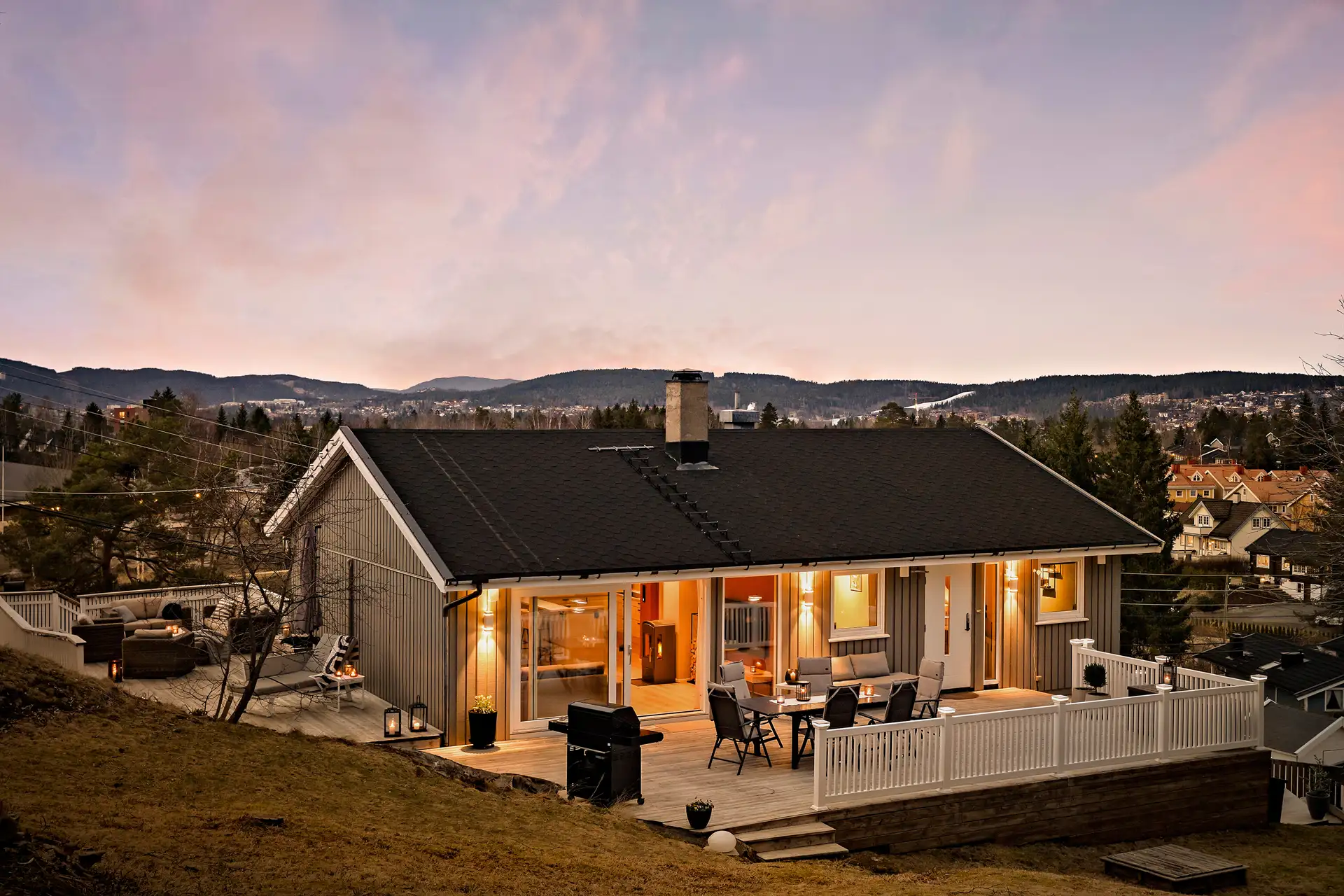 fra luke i himlingen på et soverom. Bygningen har PVC vinduer med 3-lags glass. Bygningen har malte hovedytterdører. Bygningen har malt hovedytterdører. Bygningen har skyvebalkongdør i PVC.