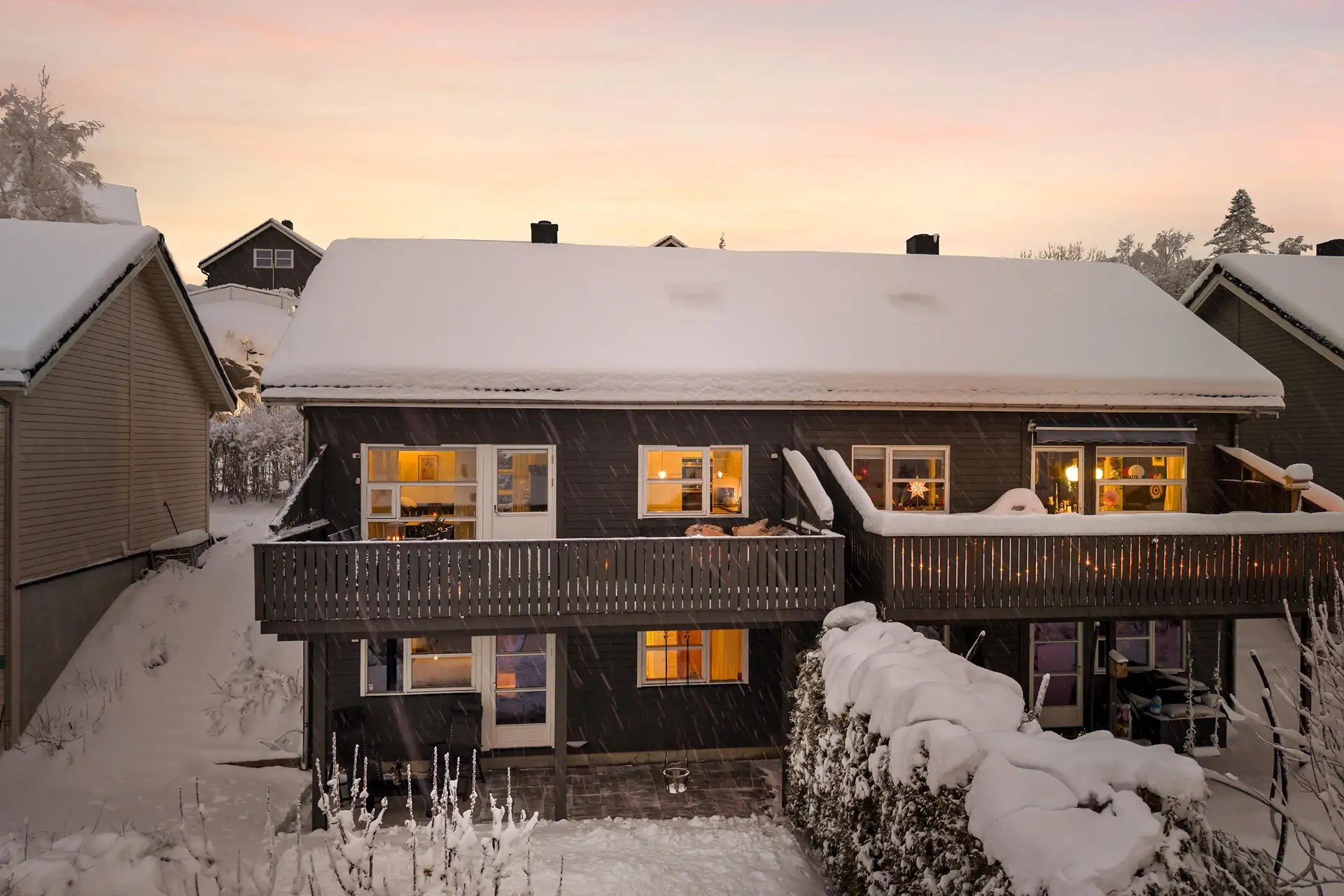 gavlen i 2.etasje er datert 2024. Bygningen har malt hovedytterdør med glassfelt og balkongdør i tre. Malt