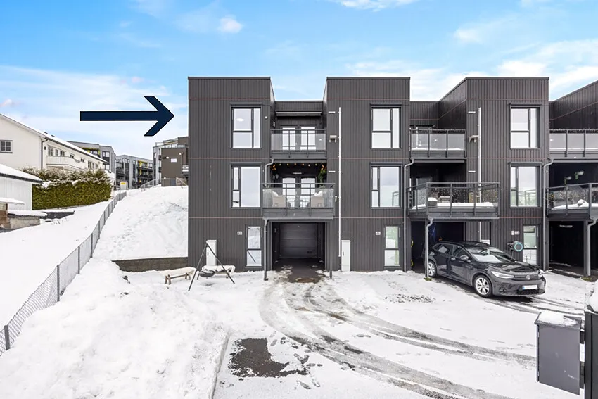 Rekkehuset ligger helst innerst i en rolig blindvei i et populært og barnevennlig boligområde på Kjeller.