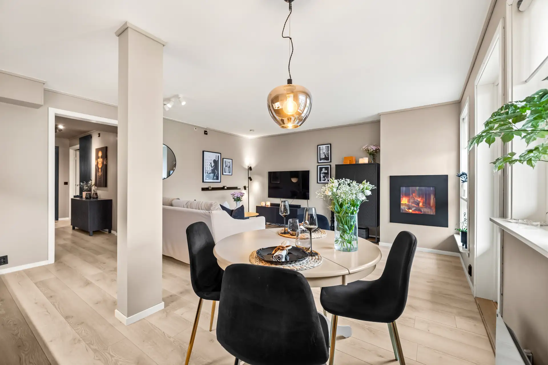 - Oppvarming: Elektrisk oppvarming med enkelte panelovner, gulvvarme på badet og fyring med gasspeis.