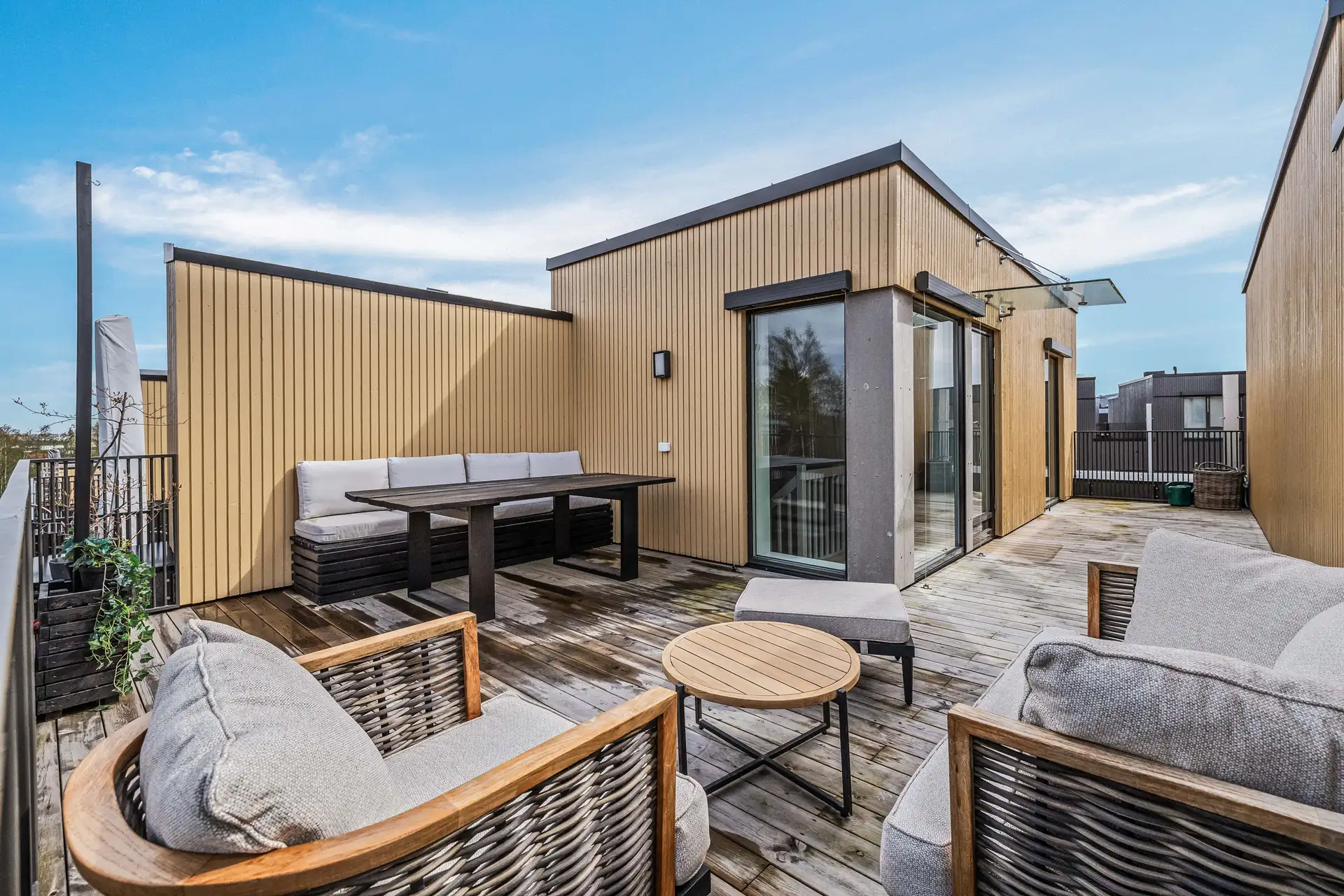 På toppen av huset ligger den store og solrike takterrassen som virkelig blir et samlingspunkt på sommerstid. ( 3 av )