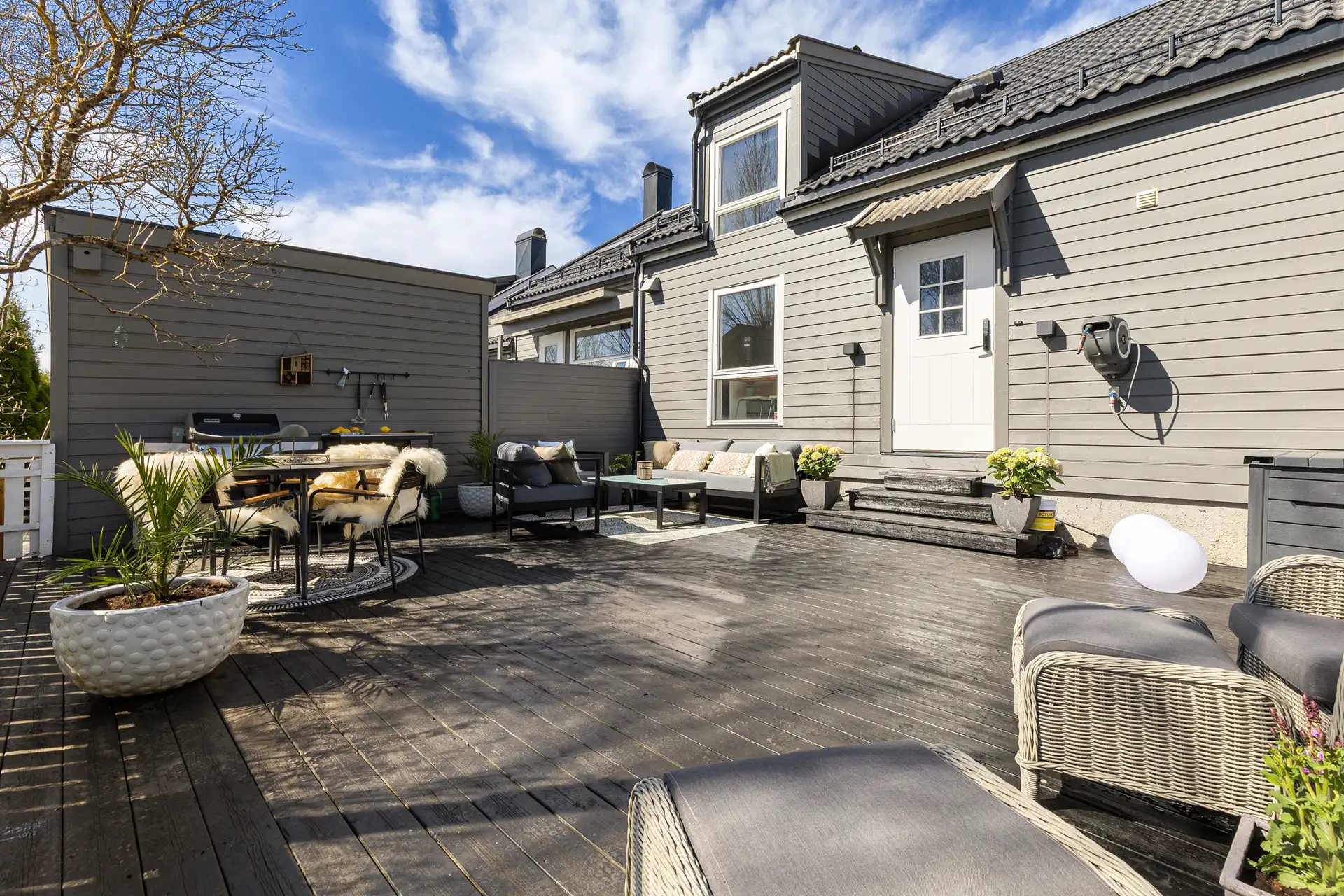 - Uteplasser: Terrassebordene er værslitte, noe som skyldes langvarig eksponering for sol, regn og temperaturvariasjoner uten tilstrekkelig vedlikehold.