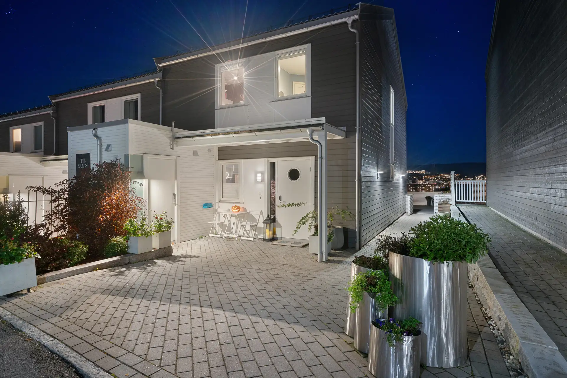 Utebod på ca. 5 kvm ved siden av inngangsdøren. Steinlagt inngangsparti med varmekabler. ( 3 av )