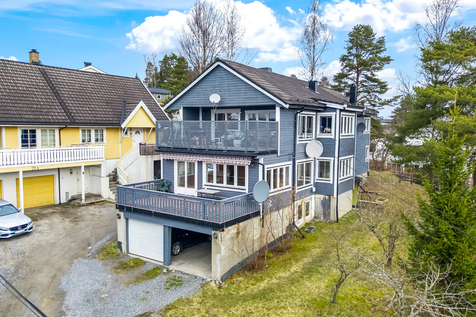 - Terrasse: Det registreres sprukne og løse fliser. Det er påvist fukt i gipsplater på undersiden av terrassen (garasjetaket). Kostnadsestimat 100 000 - 200 000 kr.