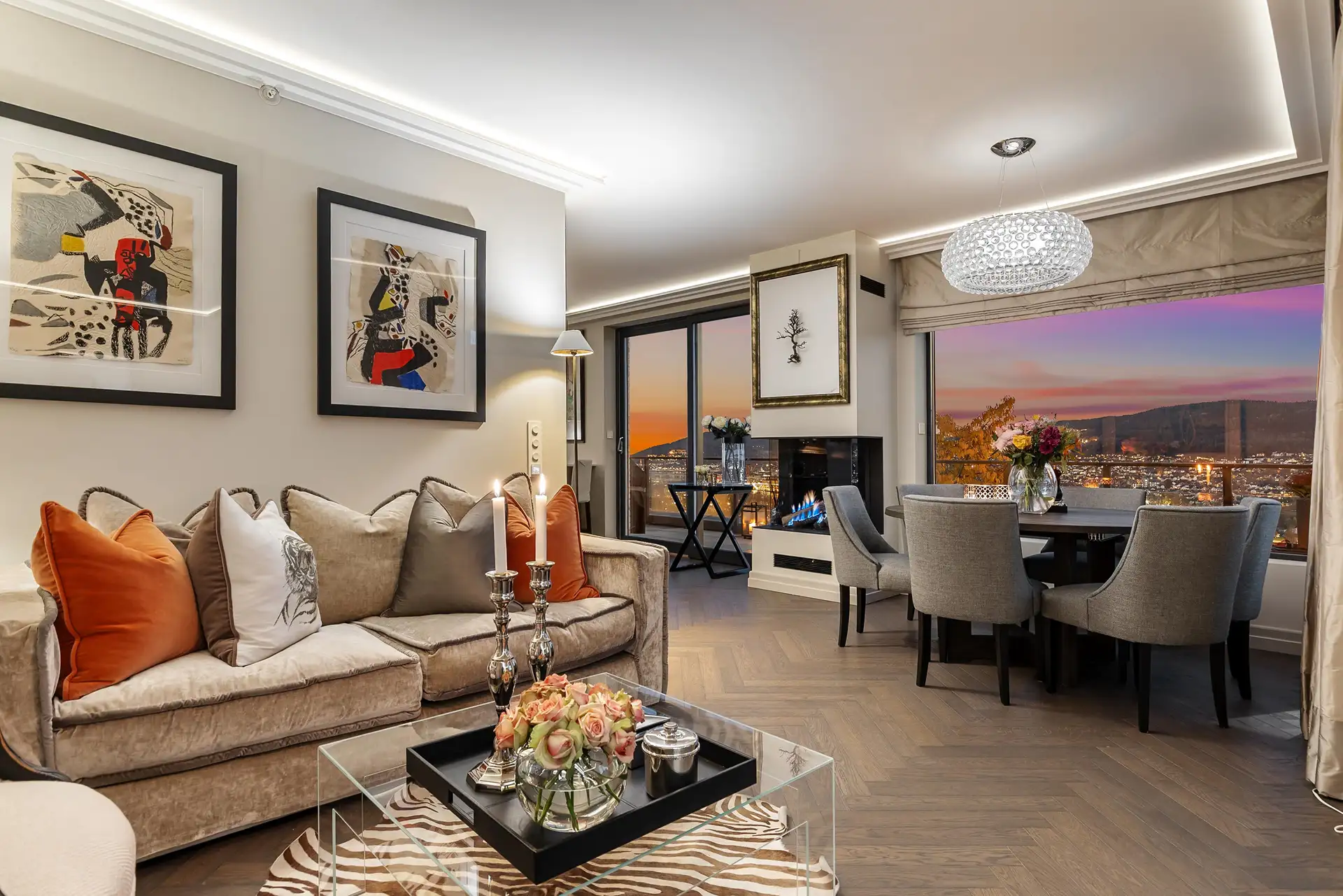 Stuen er virkelig noe for seg selv - med fantastisk utsikt og vinduer som nærmest går fra gulv til tak som fyller rommet med naturlig lys. ( 10 av )