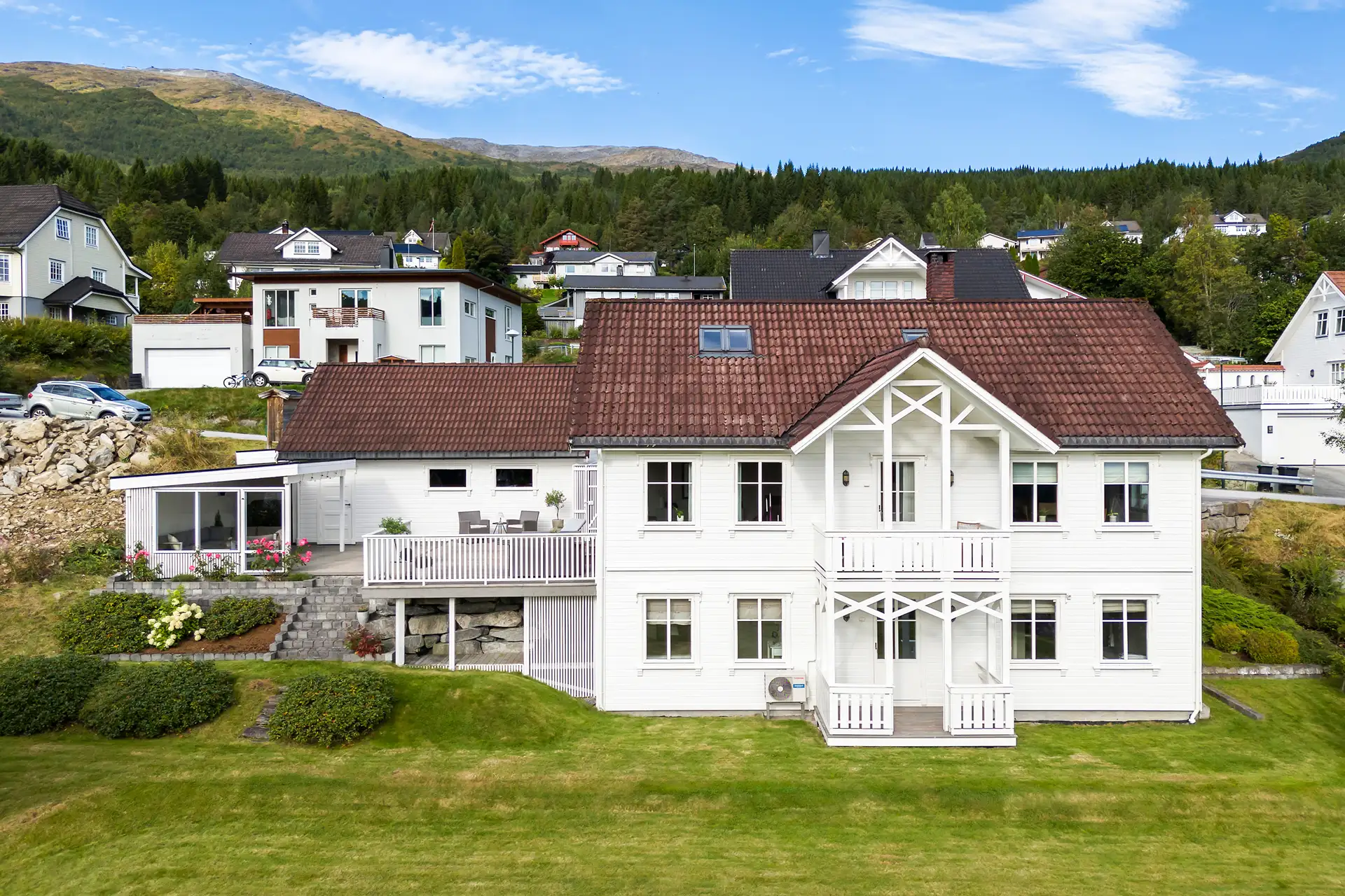Boligen fra 2000 går over tre etasjer, med underetasje, hovedetasje og loft. Det er også en garasje og på terrassen er det ett overbygg.