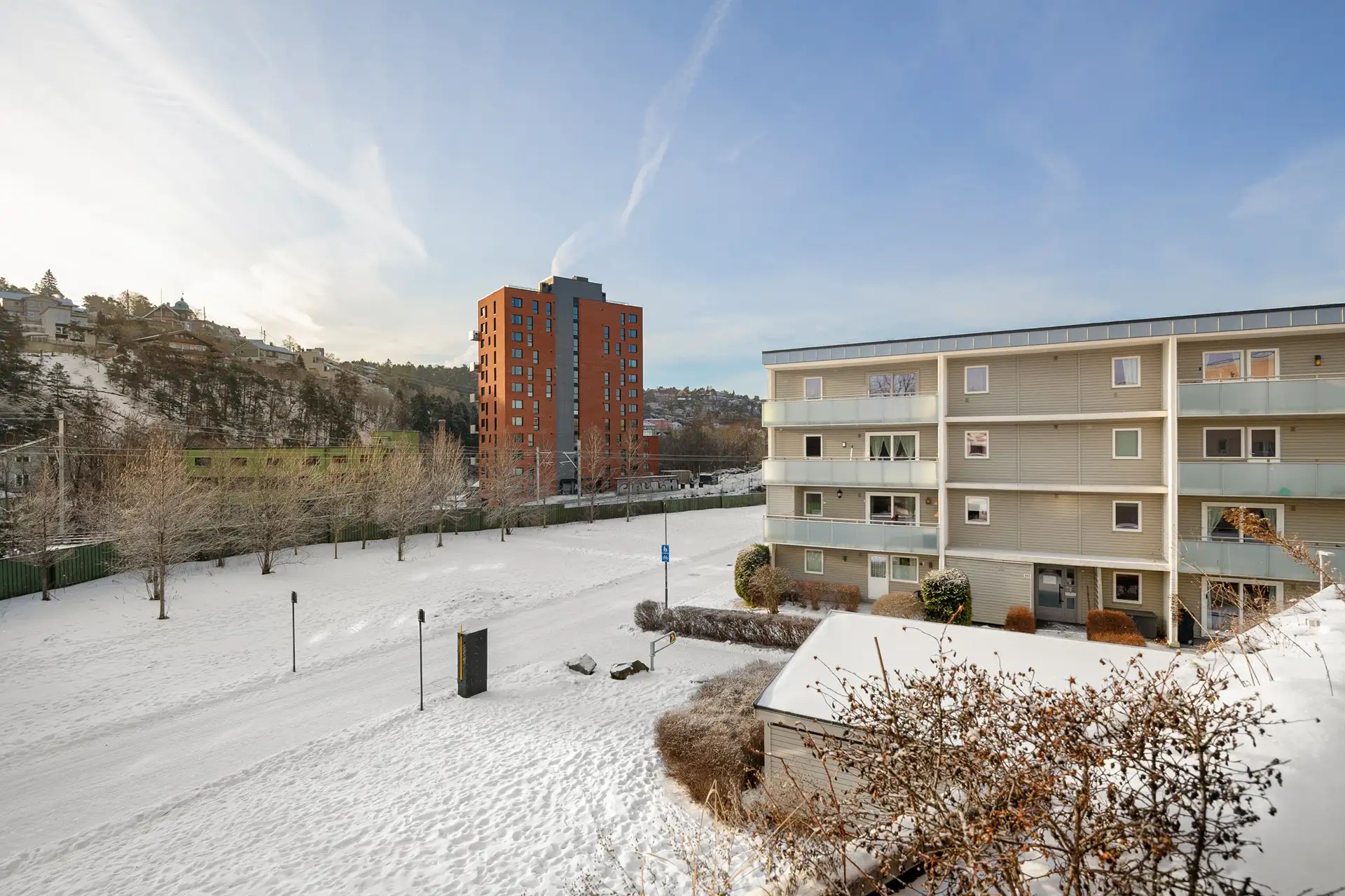 Når du står på terrassen forstår du fort at dette er en viktig del av leiligheten. Uteplassen er et hyggelig oppholdssted både på sommer og vinterstid. Her kan du sette ut flotte utemøbler til sommeren da størrelsen tillater plass til flere gjester. I helgene får du anledning til å nyte solen store deler av dagen i fred og ro. Terrassen har lite innsyn og føles usjenert og privat. Når den første snøen har falt kan man kle seg godt og drikke en kopp kaffe mens man nyter synet av glade barn som leker i snøen. Terrassen har meget gode solforhold, og det er god plass til sittegruppe og grill. Det er god avstand til nærliggende bygg, så man har godt med albuerom her på Etterstad.