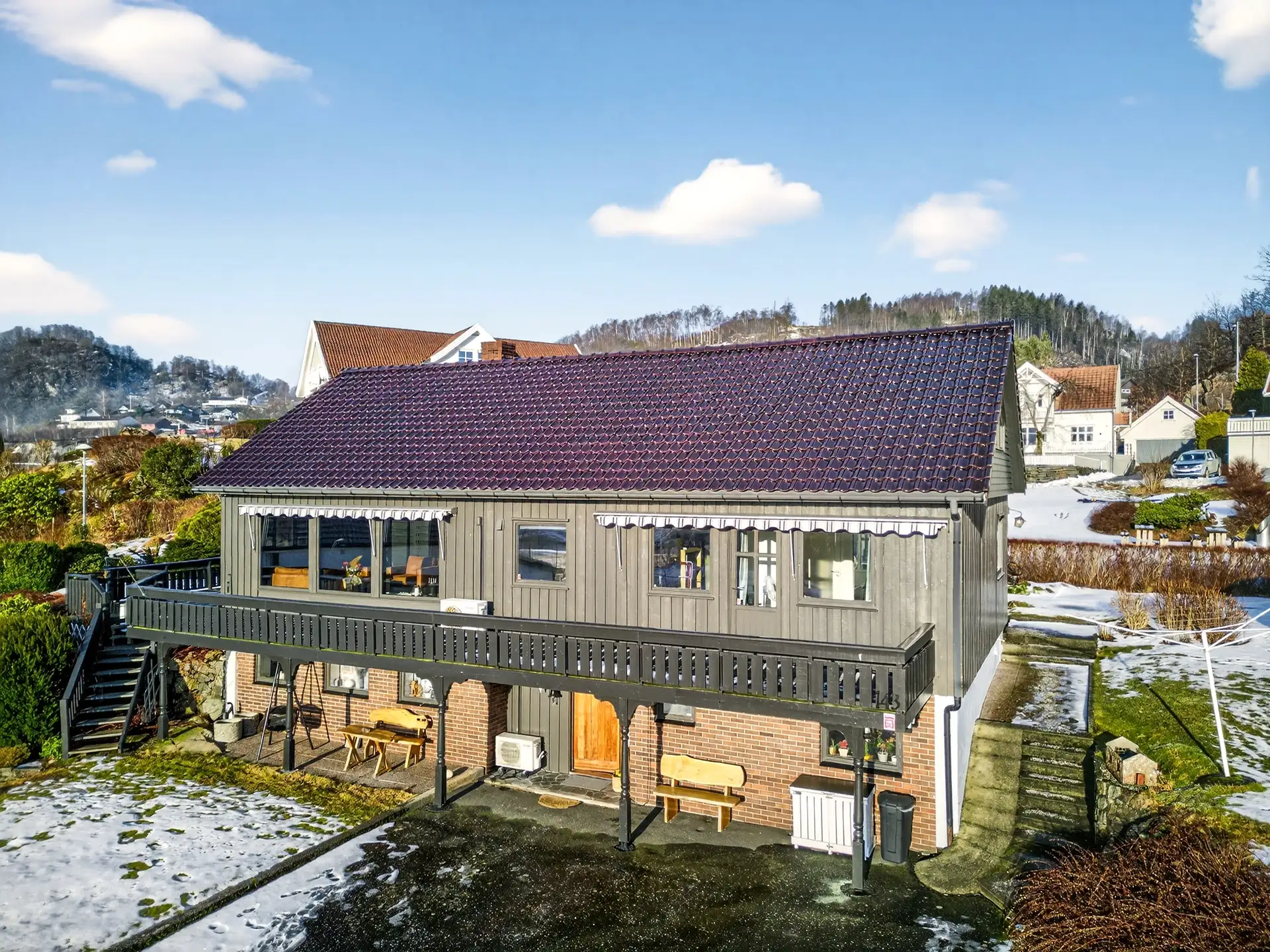 Velkommen til Røyslandsvegen 143 - romslig enebolig i barnevennlig område. Vi presenterer en innholdsrik enebolig over tre plan, beliggende i et rolig og barnevennlig område med kort gangavstand til skole, barnehage og nærbutikk. Her får du en fleksibel bolig med gode kvaliteter og attraktiv beliggenhet. - Lys og romslig stue med elegant fiskebeinsparkett - Moderne kjøkken og bad fra 2019 - Fem soverom (to i kjeller og ett på loft ikke godkjent) - Deler av underetasjen er i dag utleid for kr 6 500 per måned (det er ikke søkt bruksendring og utleiedelen er derfor ikke godkjent) - Godt lys og romslige oppholdsrom - perfekt for familie og gjester En sjelden mulighet til å sikre seg en attraktiv bolig i et etterspurt område.
