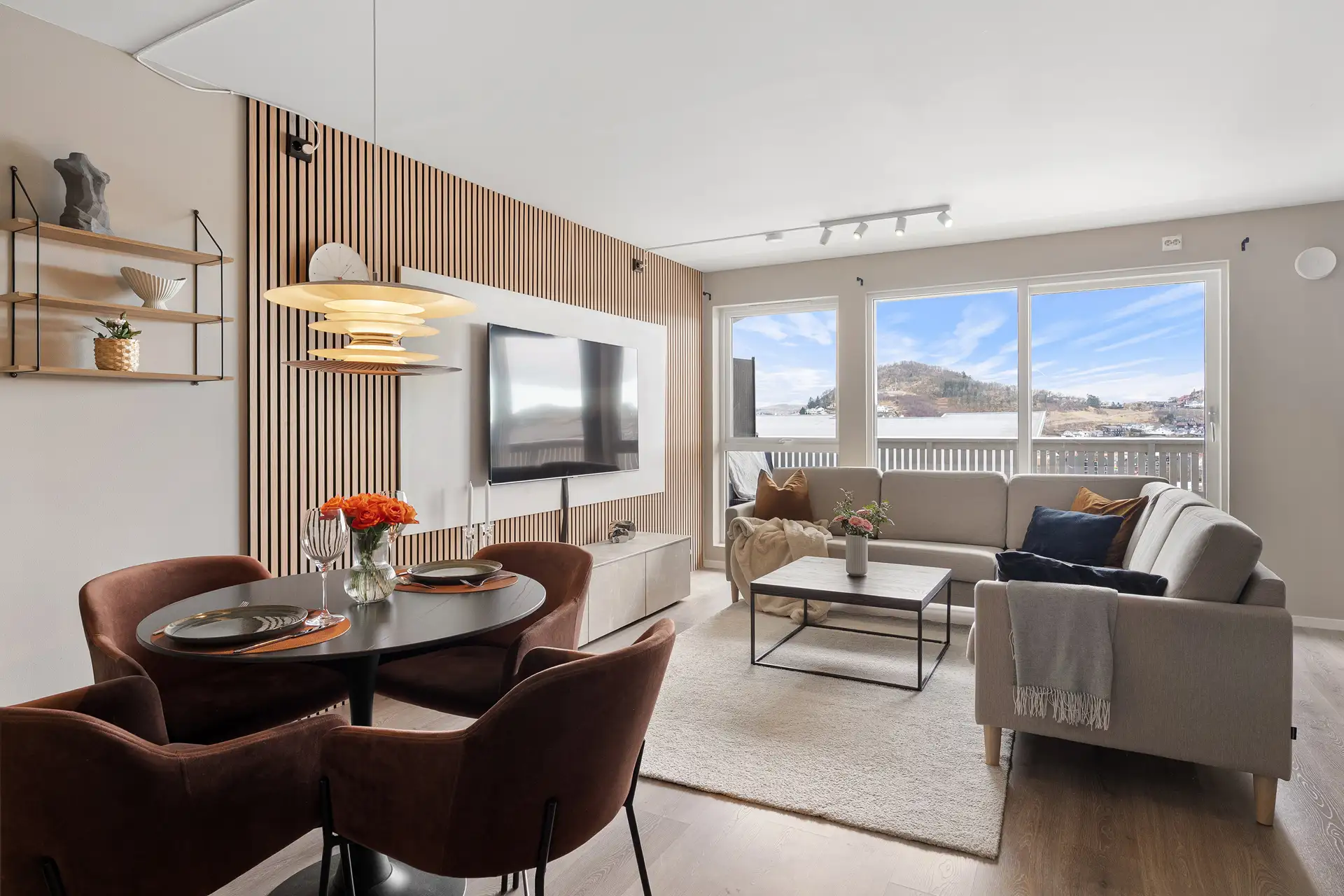 Fra stuen kan du sige sømløst ut til balkongen. ( 15 av )