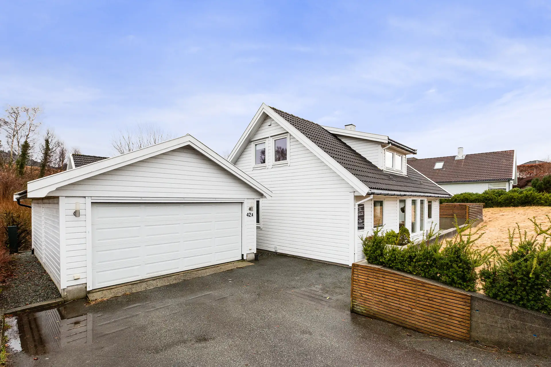 Enebolig som går over to plan med dobbel garasje. ( 1 av )