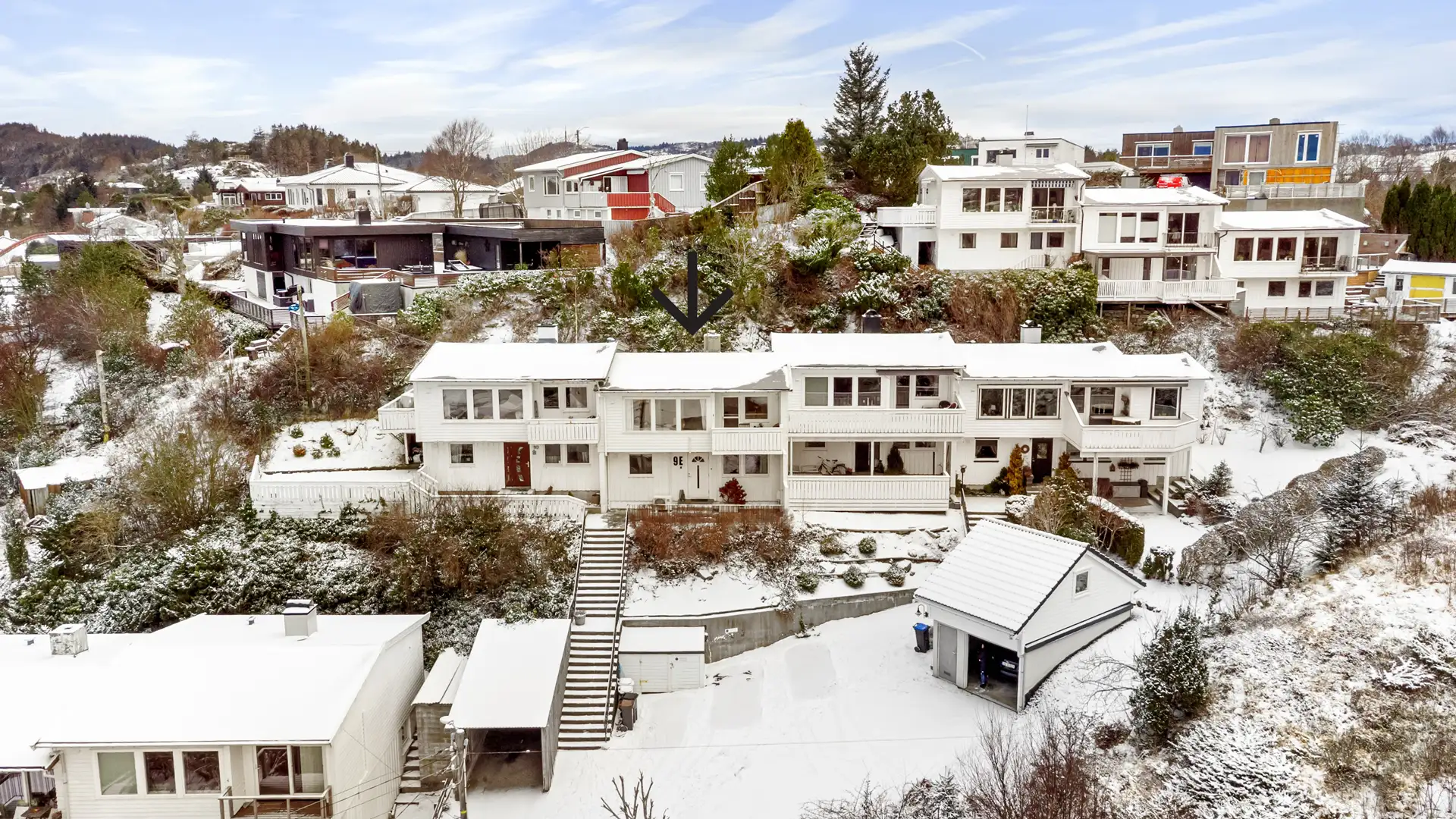 Terrenget har fall inn mot boligen på nordsiden