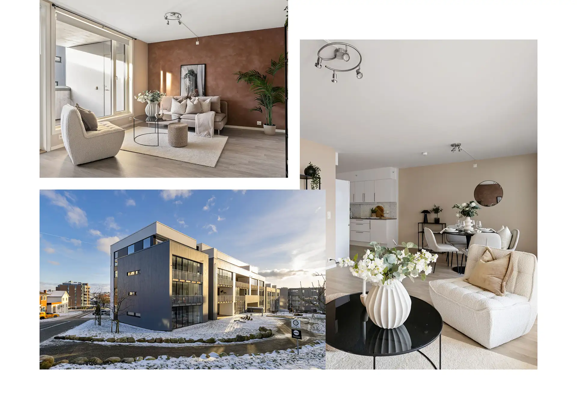 Innvendig er det gulv av parkett og laminat. Veggene har malte