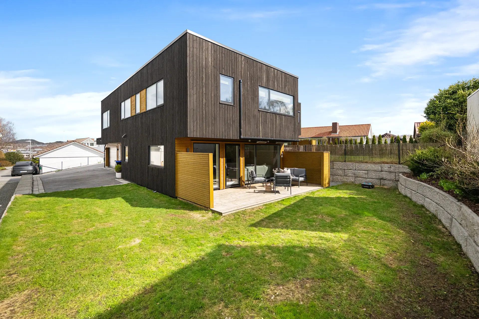 • Flat tomt med hage, terrasser og et romslig gårdsrom