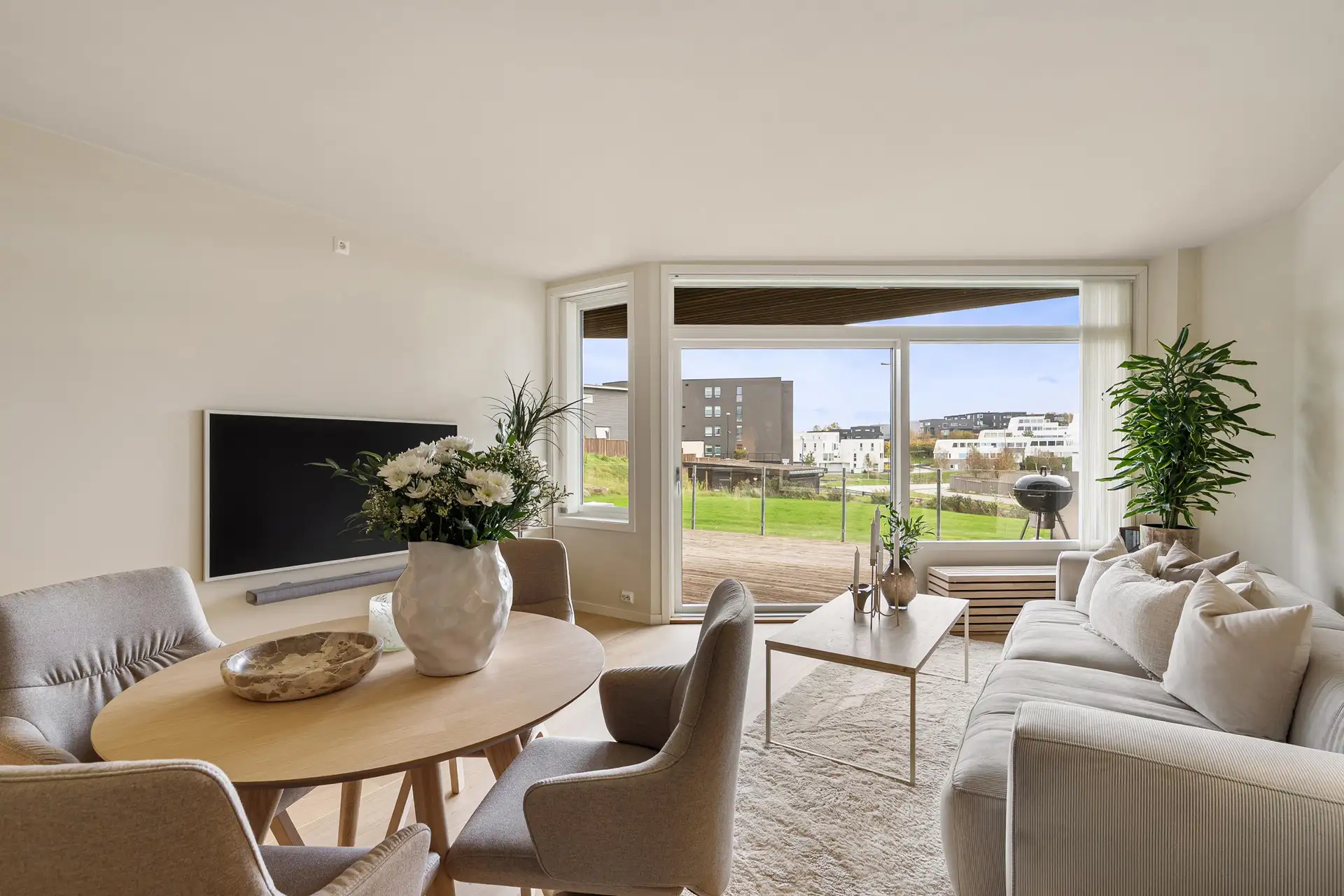 fungerer som en forlengelse av stuen. Med god plass til både sittegruppe og grill ligger alt til rette for å