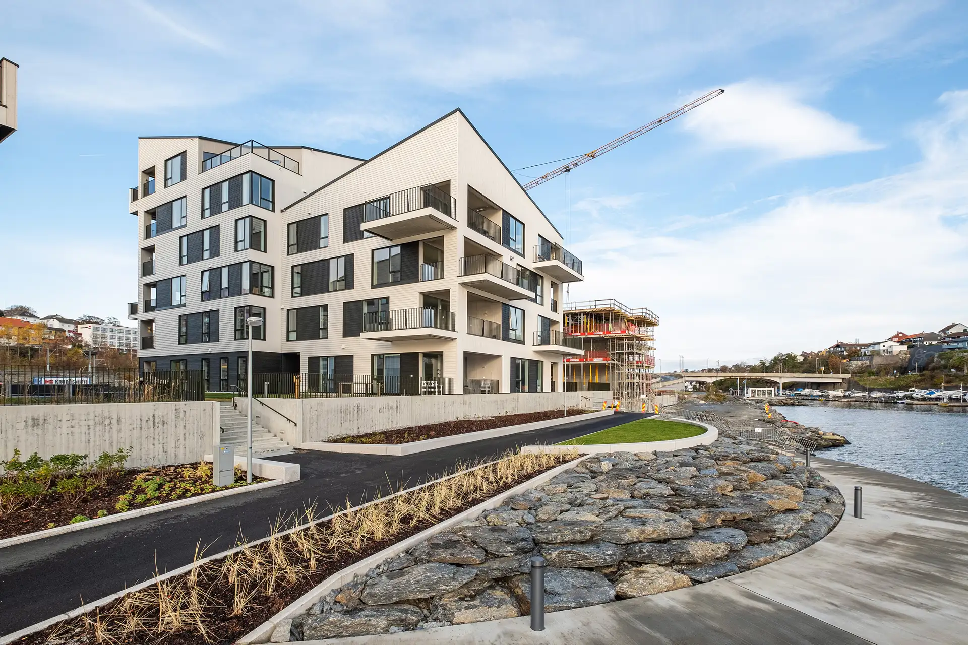 Lekker og moderne leilighet i maritime omgivelser med parkering i lukket anlegg, 2 soverom og balkong på 17 kvm.