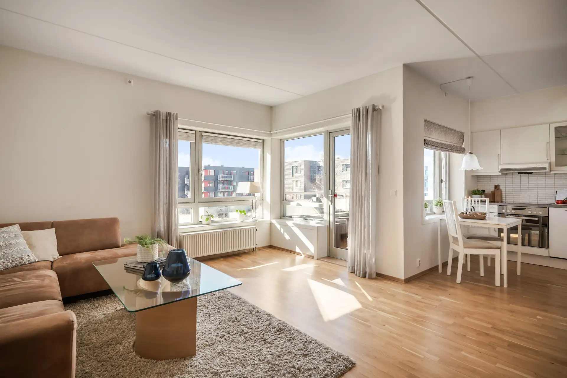 Lys og moderne 2-roms selveier. Fast p-plass. 2 solrike uteplasser. Takhøyde på 3 meter. Sentral & attraktiv beliggenhet