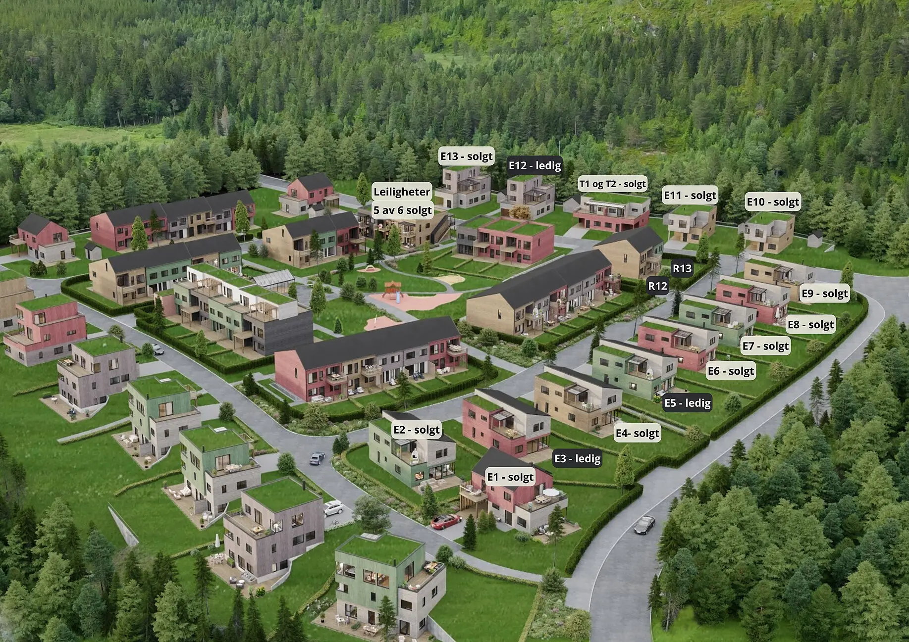 På Trøåsen har vi fokusert på mangfold og variasjon for å skape en spennende liten landsby i det grønne.