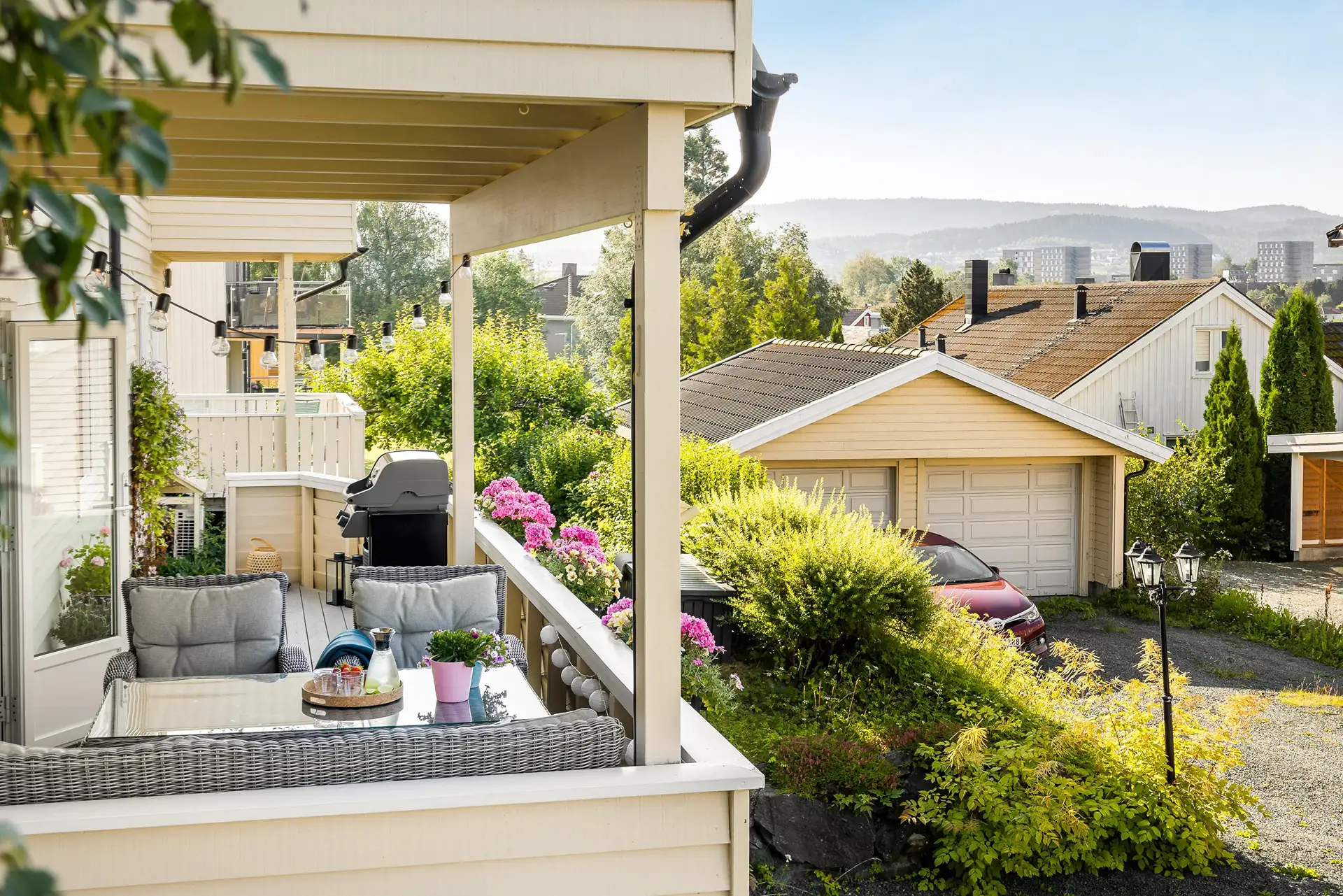 rekkverk. Alder på tettesjikt under terrassebord er ukjent.