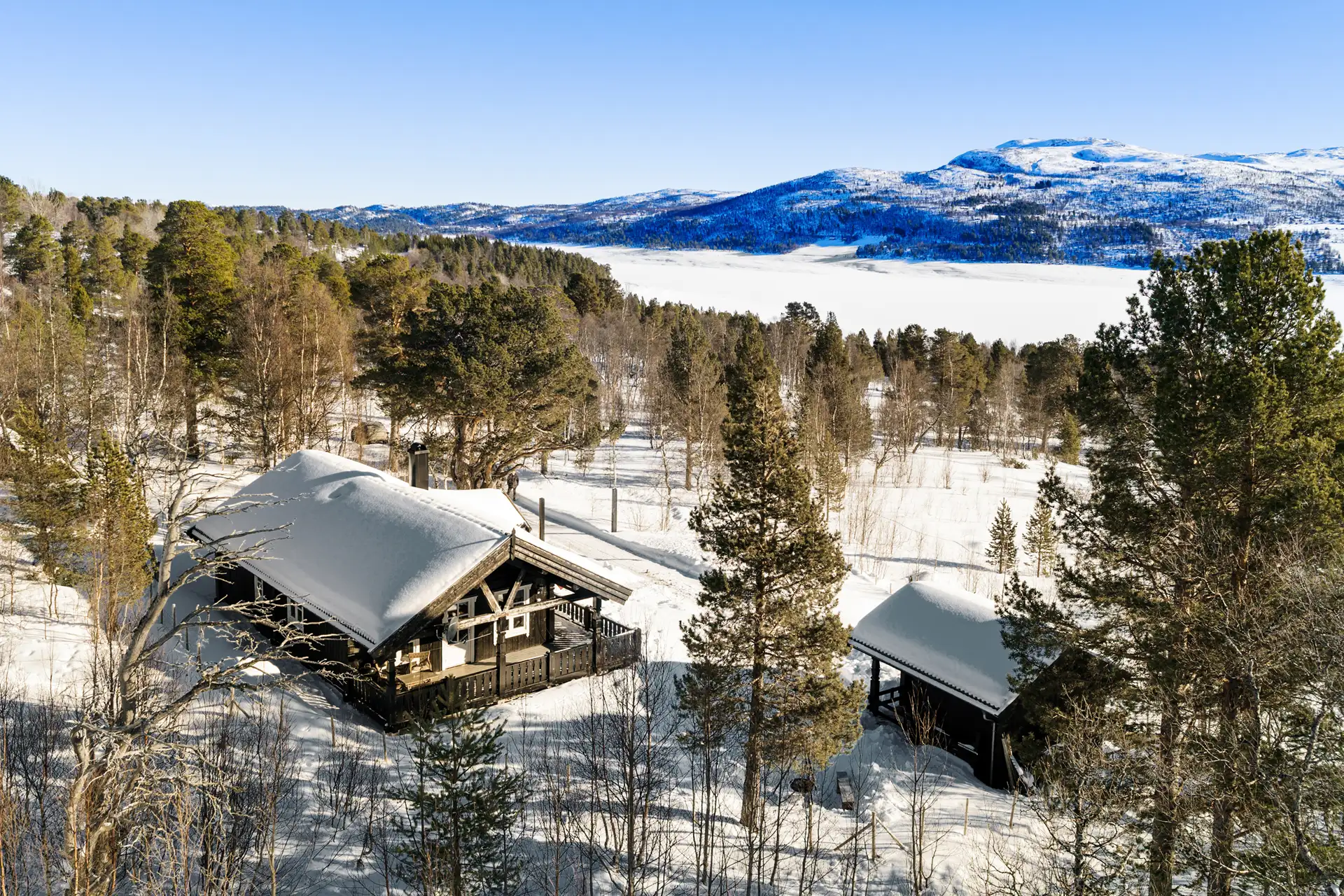 Familiehytte fra 2014 med svært god standard. 10 sengeplasser. Fenomenal utsikt. Meget solrikt. Helårs kjørevei.