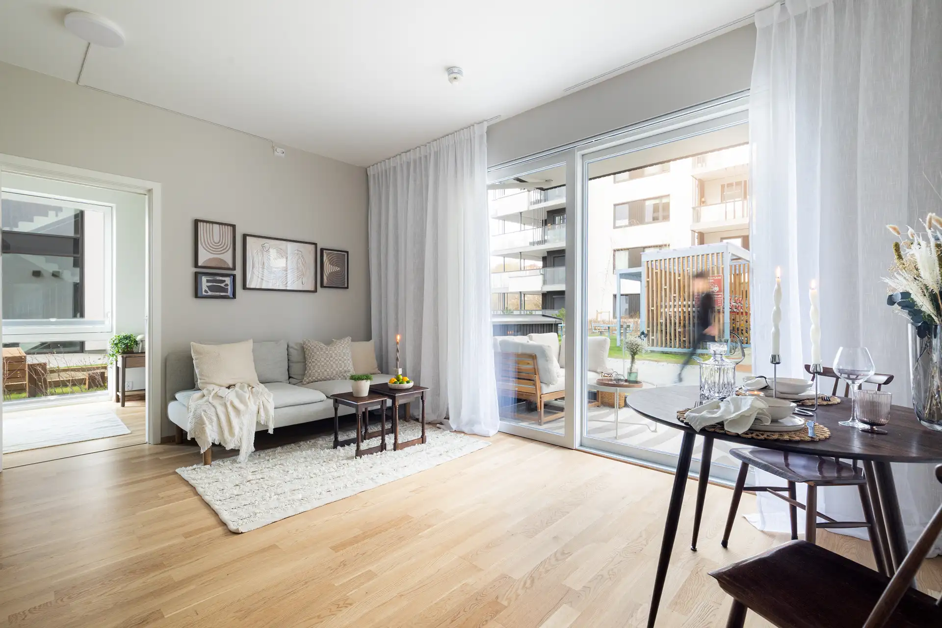 Moderne 3-roms selveier fra 2021 med privat terrasse og god takhøyde. Fjernvarme og internett inkl. i felleskostnader.