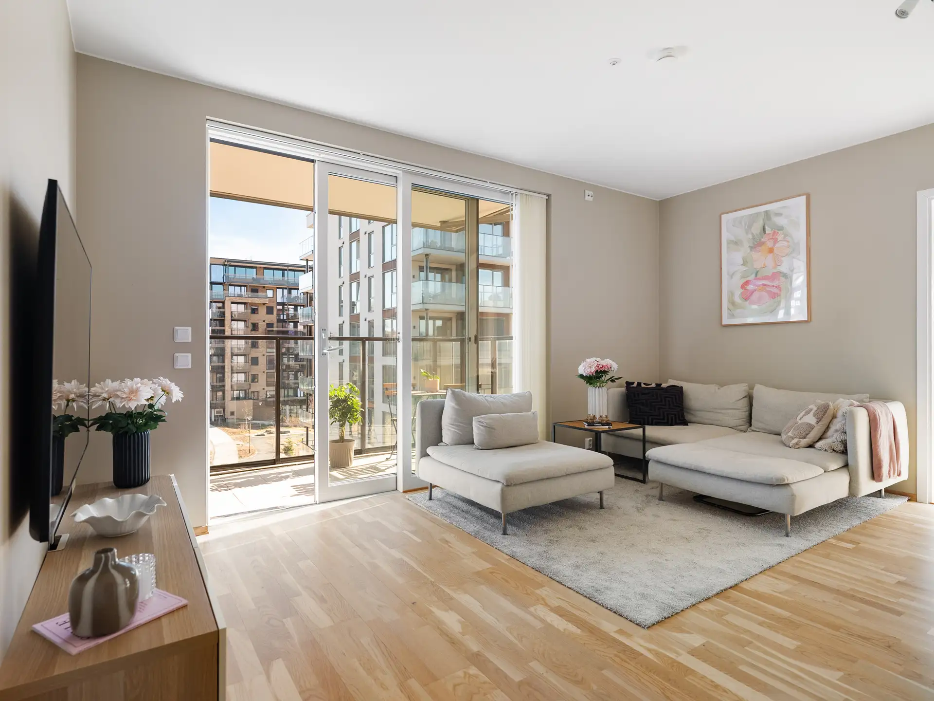 Sjelden 4-roms hjørneleilighet fra 2017 rett ved vannkanten - 3 soverom - 32m² Solrik terrasse - P-plass m/lader - Heis