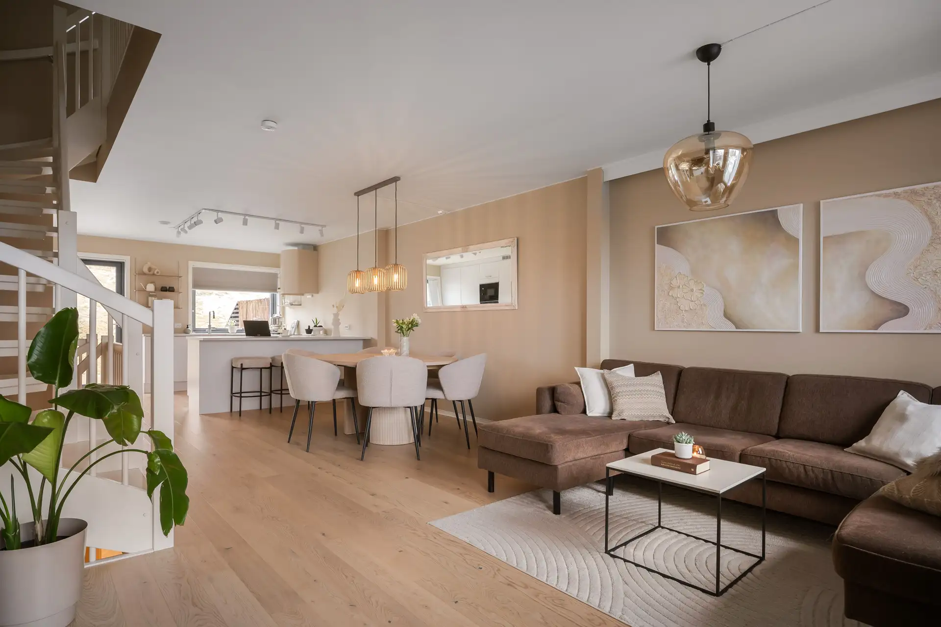 Rommet har lyst gulv og malte overflater i duse beige toner, som skaper en lun og harmonisk atmosfære. ( 16 av )