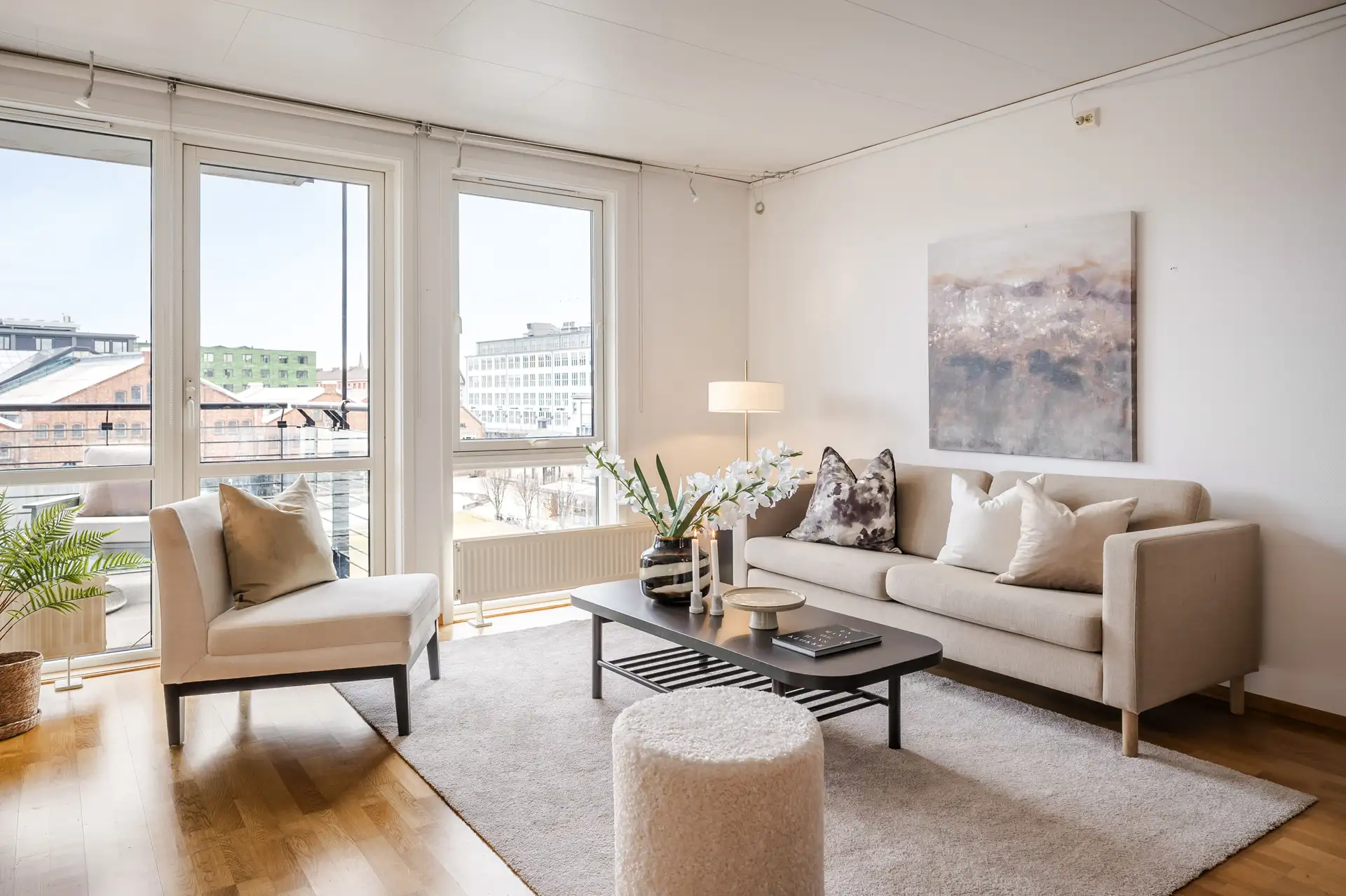 Videre inn åpner boligen seg mot en lys og innbydende stue på hele 26 kvm. ( 9 av )