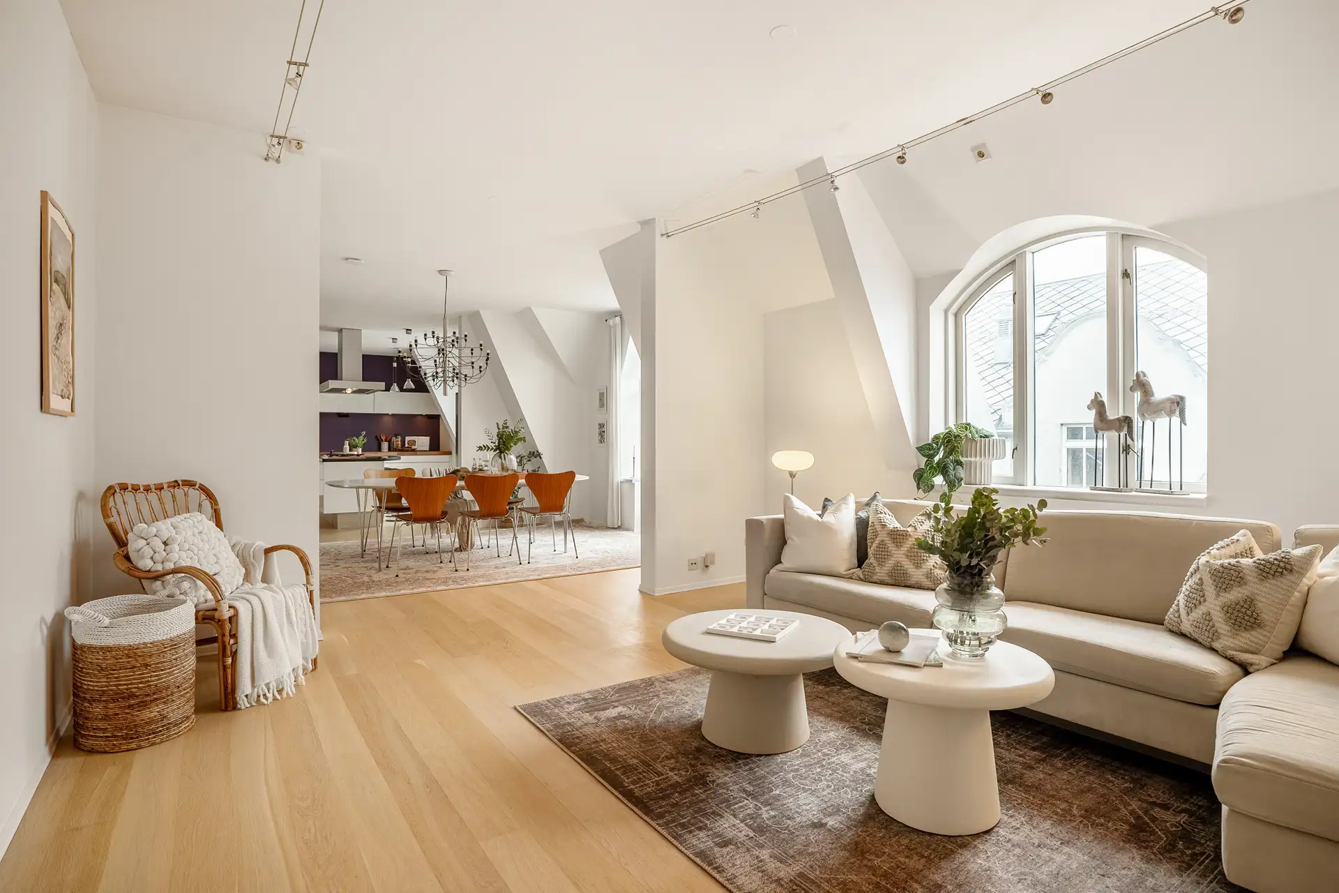 Innvendige overflater består i hovedsak av eik fullplank parkett på gulv og malte overflater på innvendig vegger og tak.
