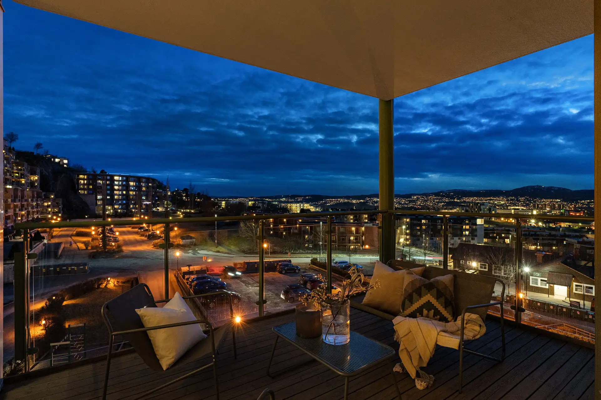 Solrik terrasseleilighet med hele 30 kvm takterrasse og nydelig utsikt. To boder.