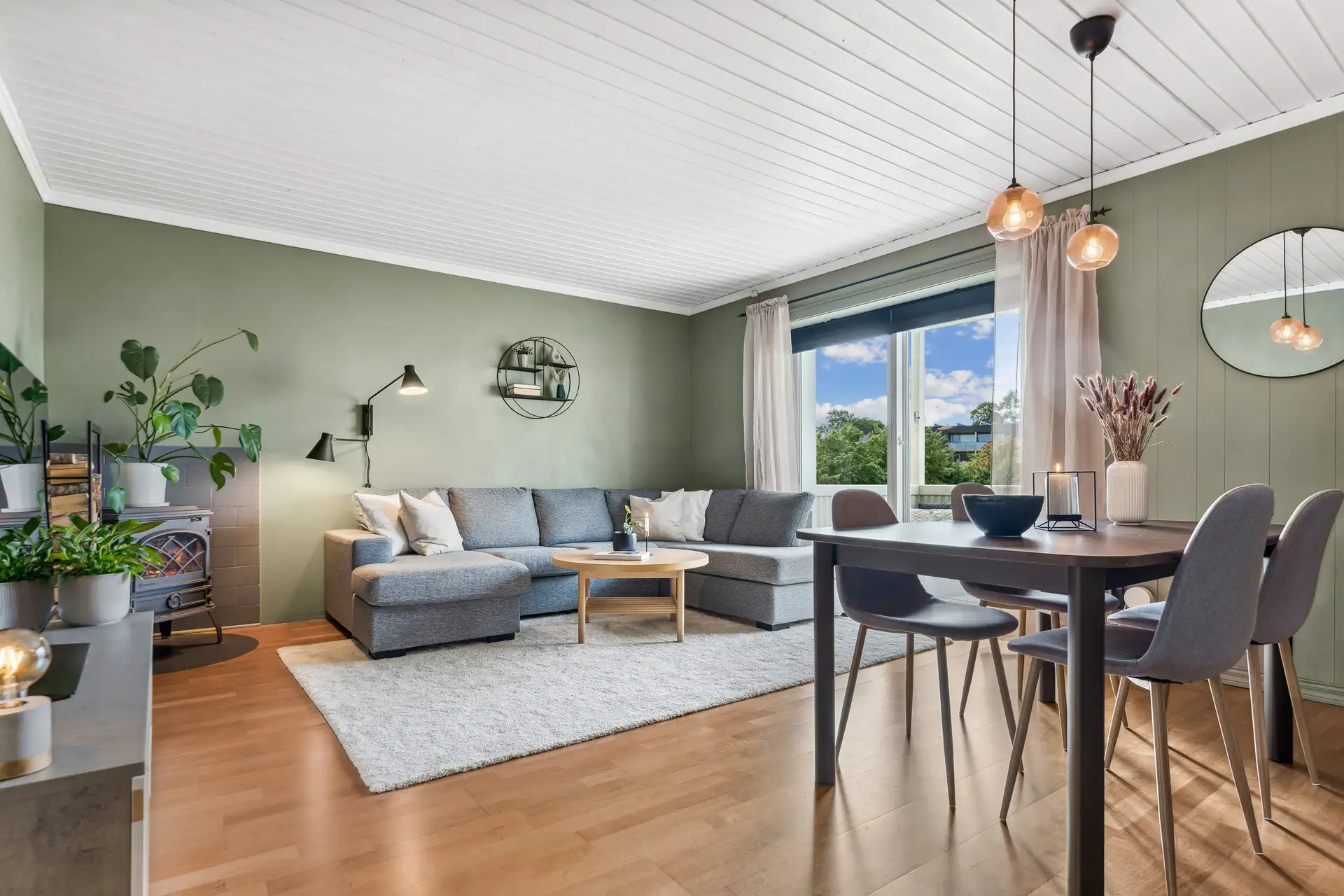 Leiligheten ligger i 2. etasje, noe som gjør at den er lett å holde varm siden den nyter godt av oppvarmingseffekten fra underliggende og overliggende leiligheter. Velkommen til Nordre Hallsetveg 88 E. ( 2 av )