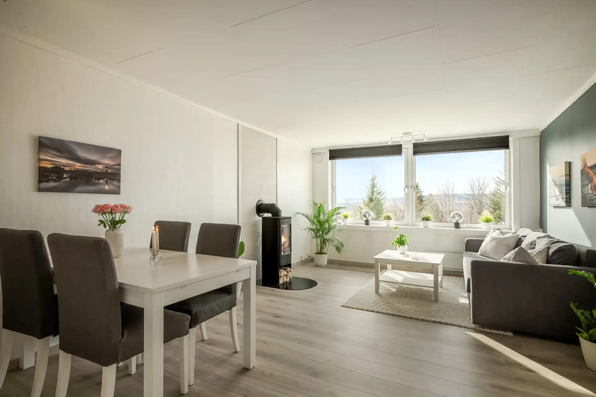 Lys og trivelig 4-roms med romslig planløsning. Renovert borettslag. Innglasset balkong med fin utsikt & gode solforhold
