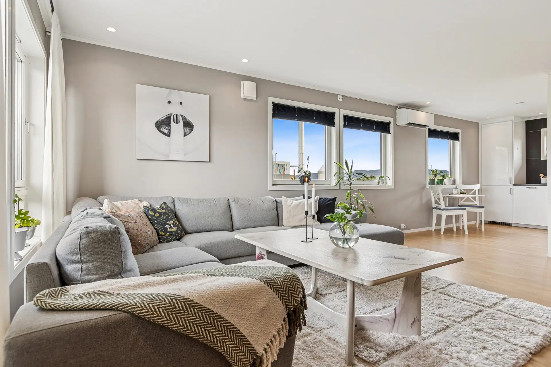 Leilighet i 3-mannsbolig oppført i 2 etasjer. Bygningen er oppført med stripefundamentering og åpen
