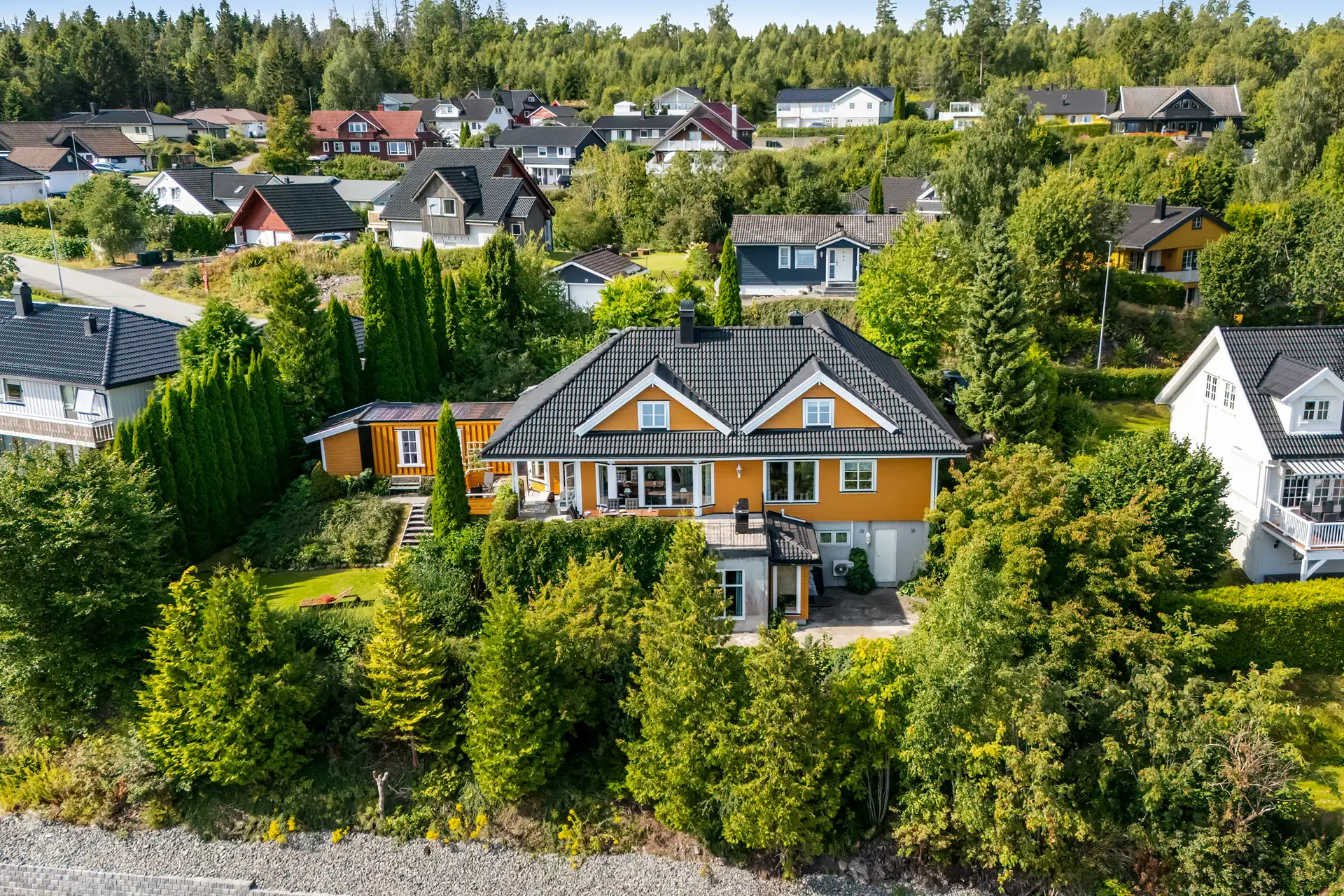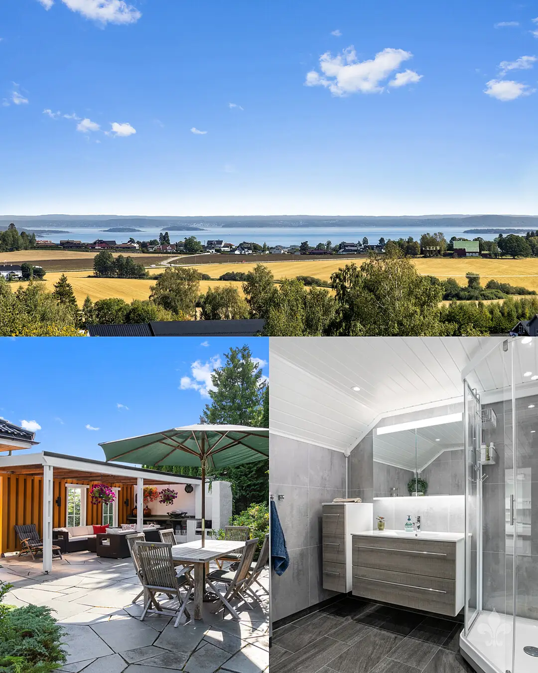 Videre inn fra entré og gang kommer du til stort allrom med nydelig utsikt og masse lysinnslipp. Her er det vinduer langs hele ytterveggen som gir utsikt fra alle soner, helt uten innsyn. Det er god plass til langbord og skjenk, og sofagruppe ved peisen. Innenfor er det ytterligere en stue som har adkomst fra både stue og kjøkken.