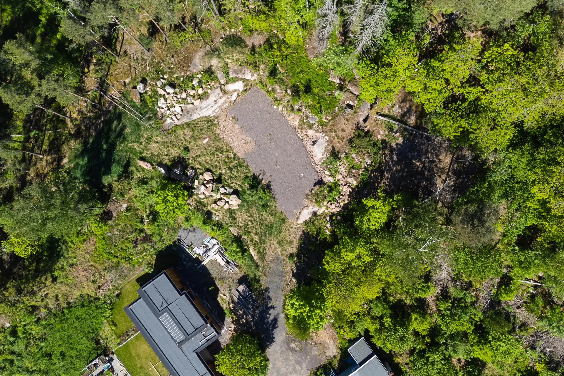 Tomten er relativt flat og opparbeidet med grus. Byggeklar med godkjente tegninger. ( 3 av )