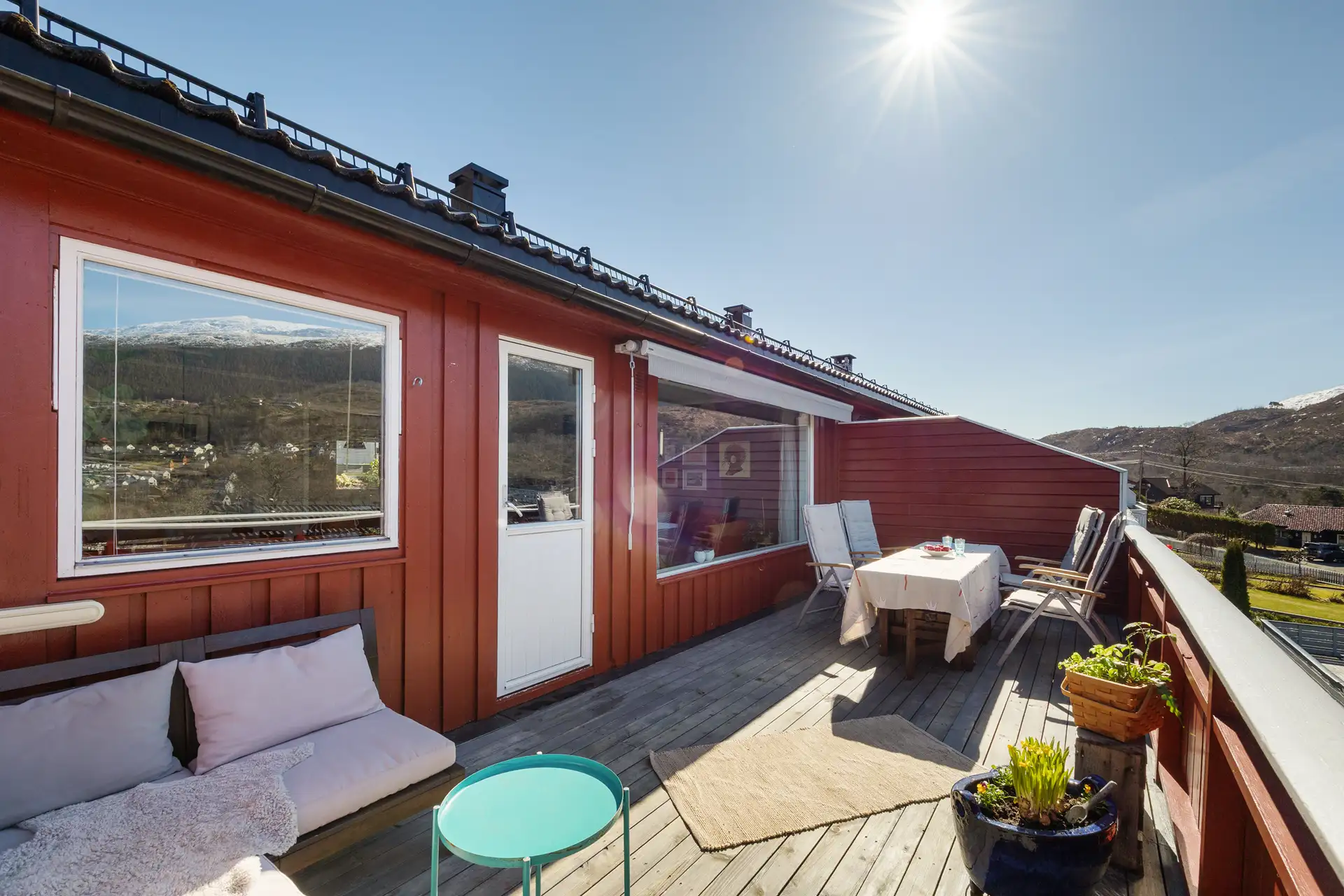 Tak: Taket er tekket med betongstein.