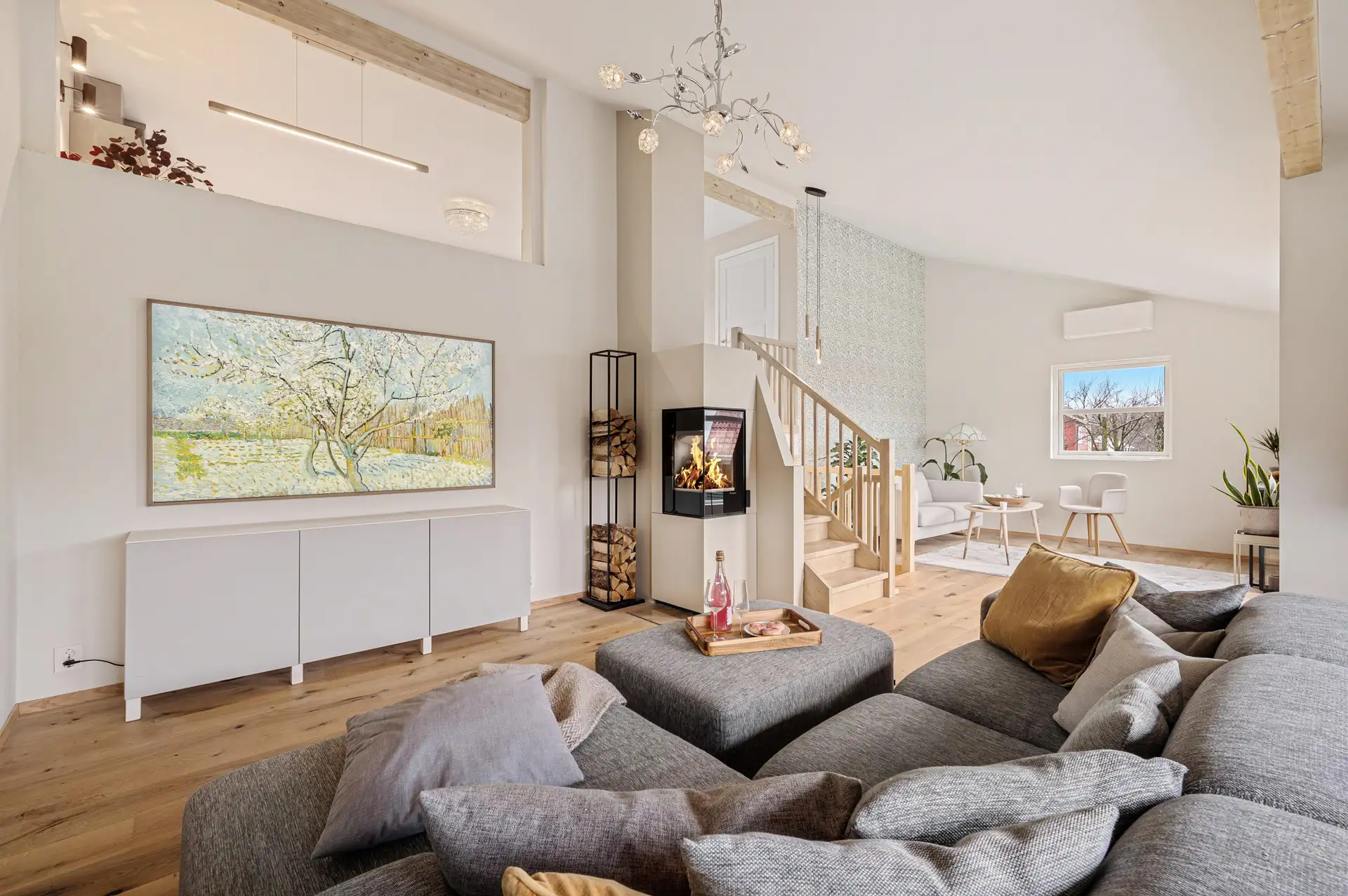 Luft-til-luft varmepumpe fra Daikin med innedel plassert i stue. Varmepumpen ble montert i 2025.