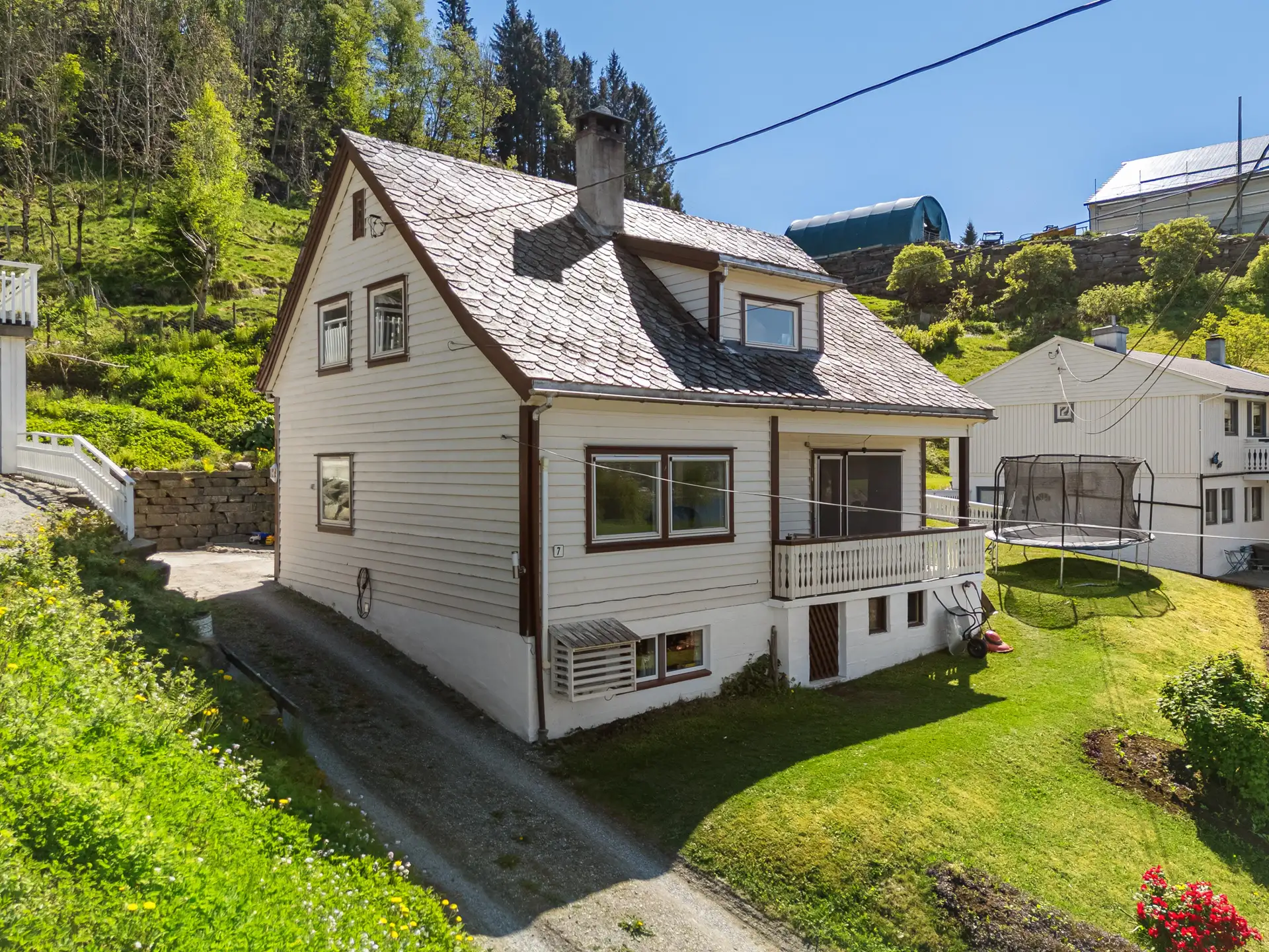 Enebolig over tre plan, opprinnelig bygget som horisontaldelt tomannsbolig, men brukt som enebolig. Det