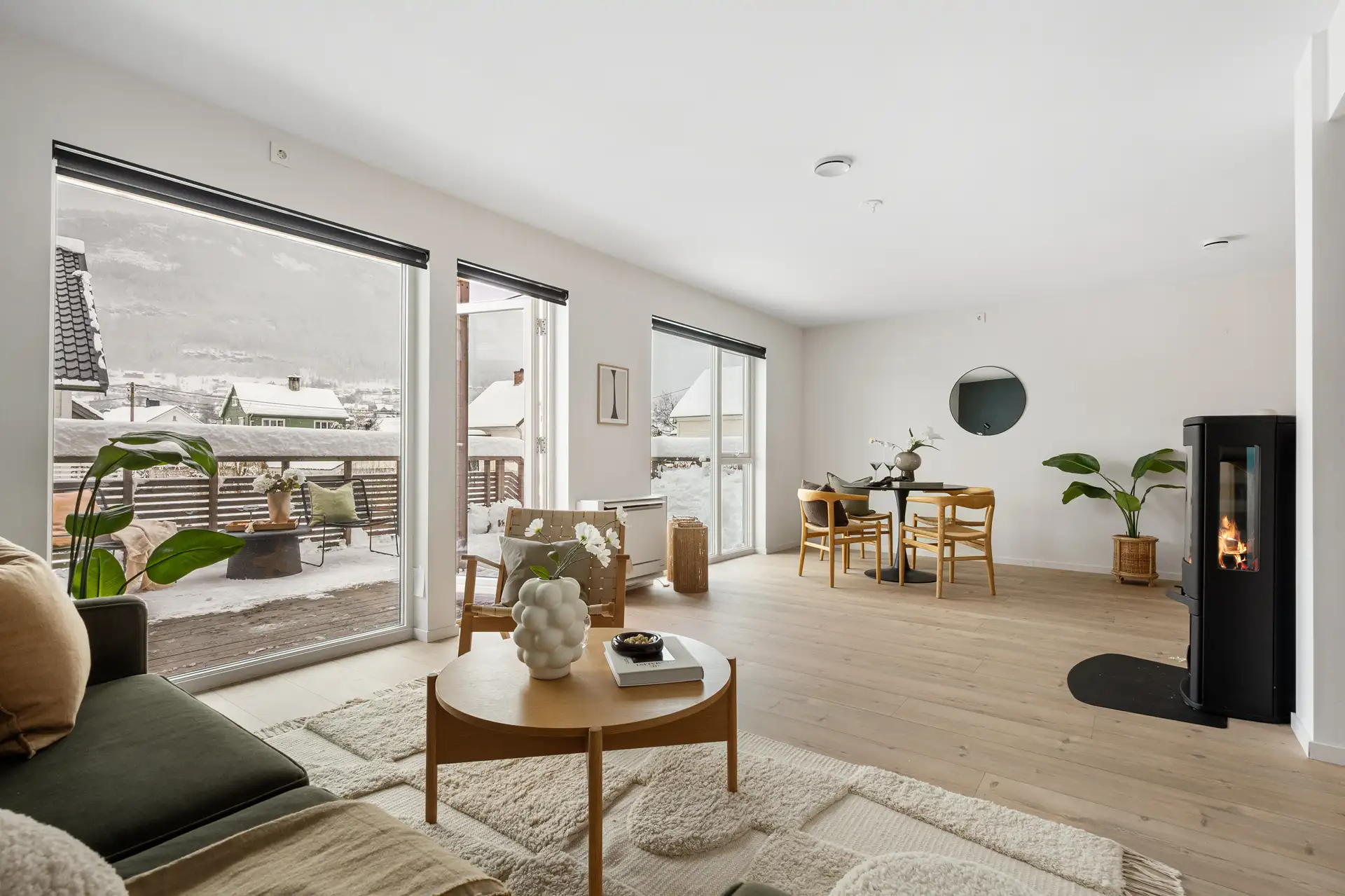 Utvendig > Balkonger, terrasser og rom under balkonger: Balkonger/terrasse er snødekt og derfor ikke nærmere vurdert. Konsekvens/tiltak: Det bør foretas nærmere undersøkelser av balkong/terrasser når den er snøfri.