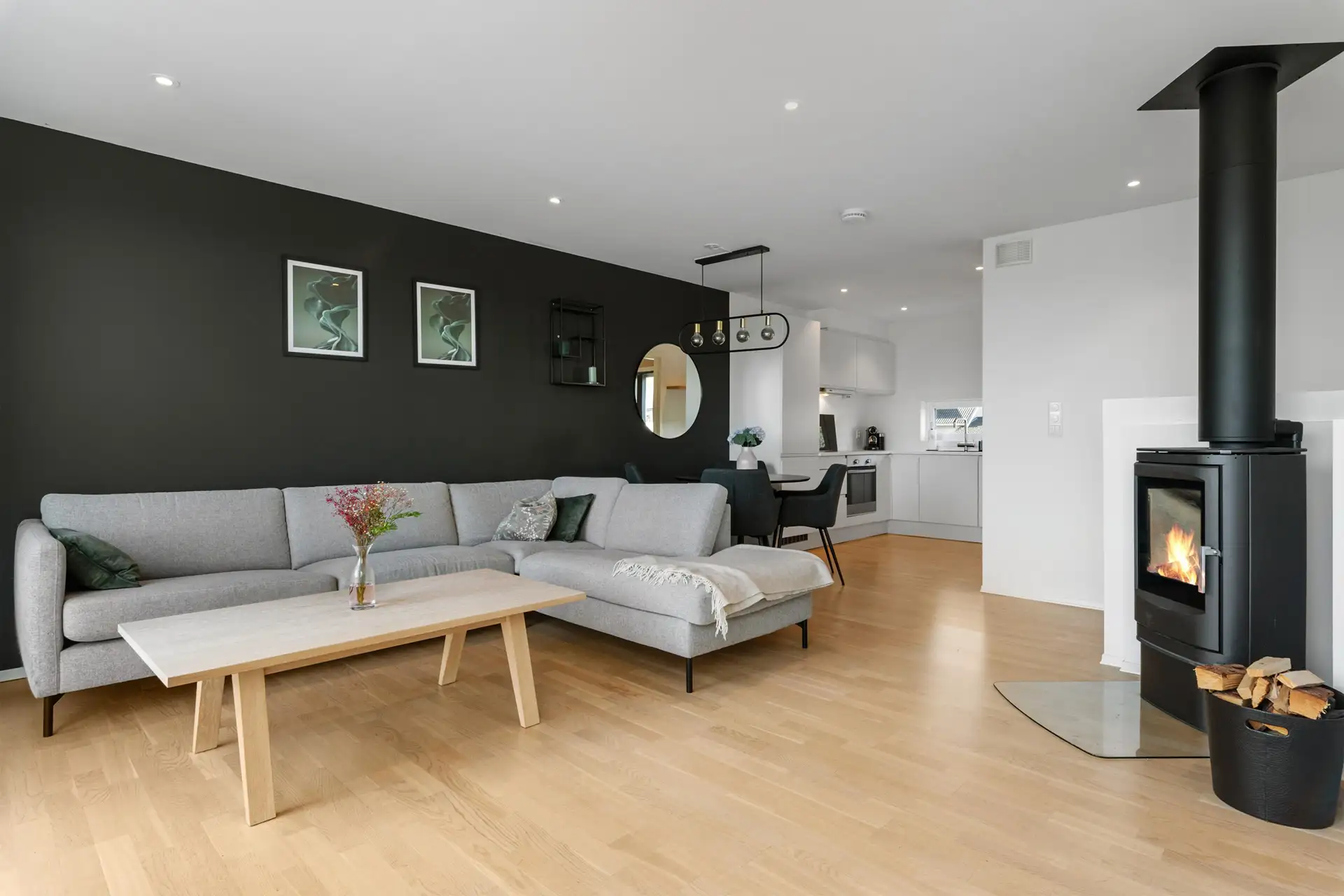 Dette er et rekkehus fra 2015. Den har grunnmur av istøpte ringmurselementer. Yttervegger over