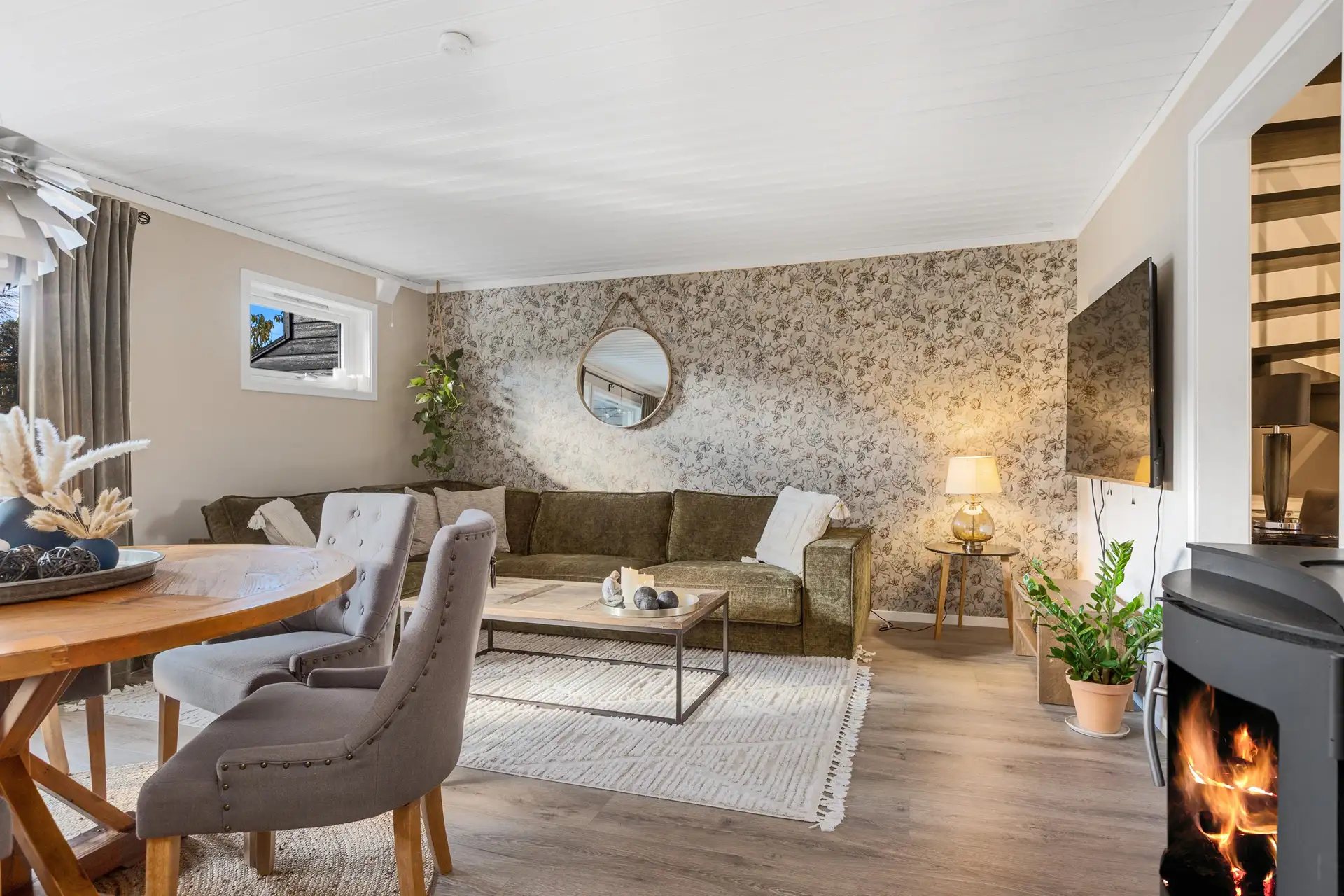 Tradisjonelt bygget trevegger fra byggeår. Kledd utvendig med liggende dobbel falset Vestlands kledning