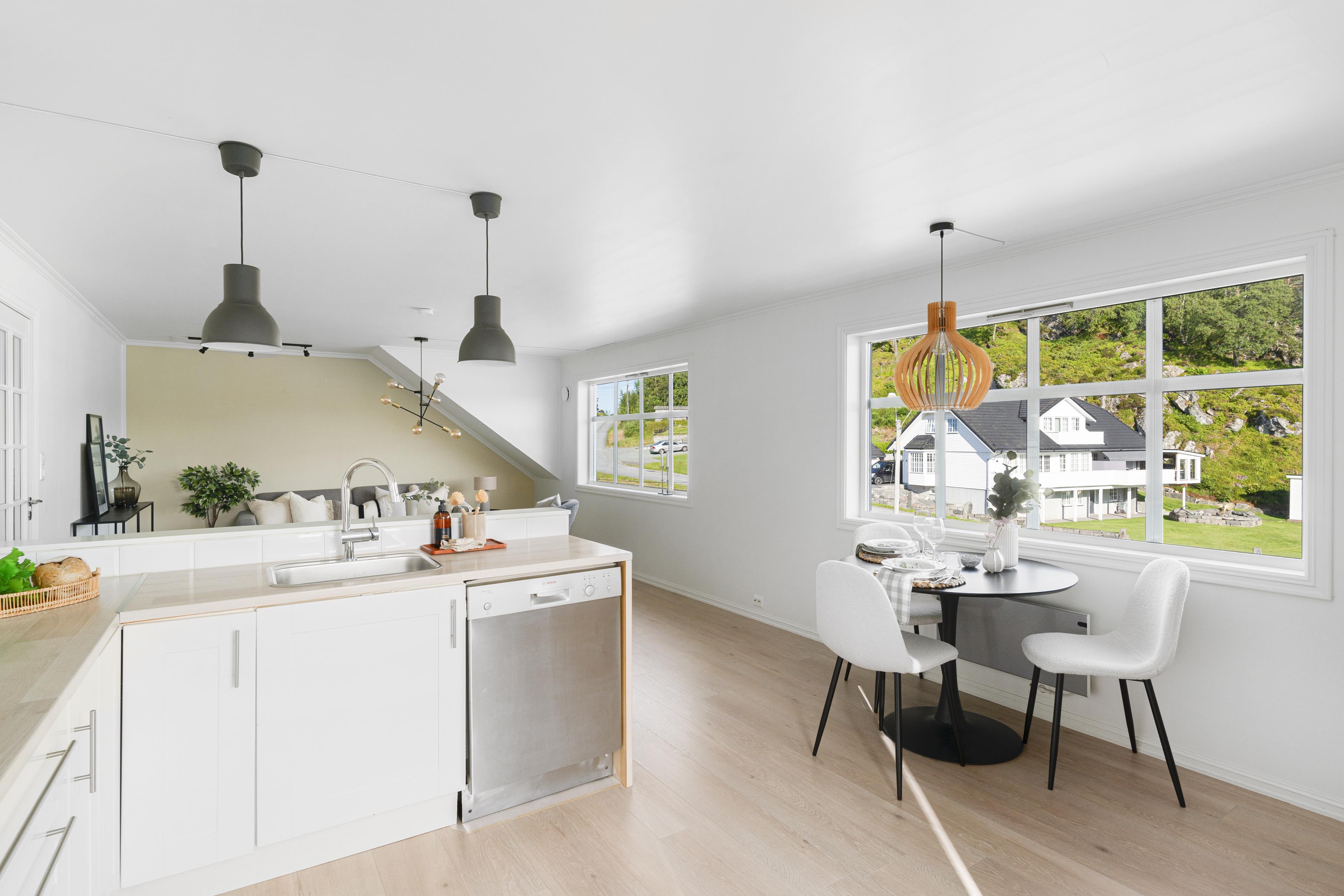 2020 - Fornyet innvendige overflater, nye laminatgulv, malt/tapetsert vegger og himlinger, ny benkeplate
