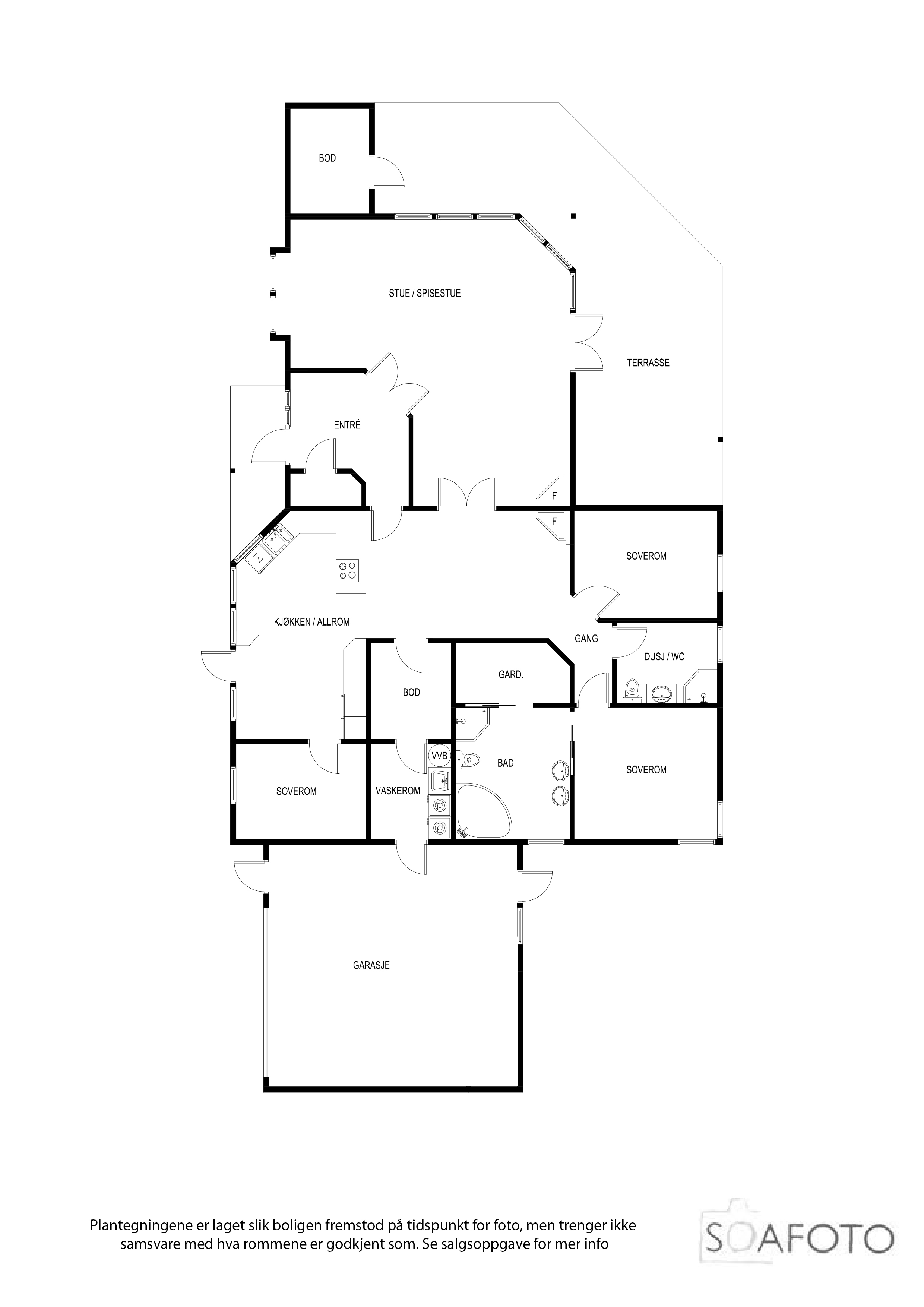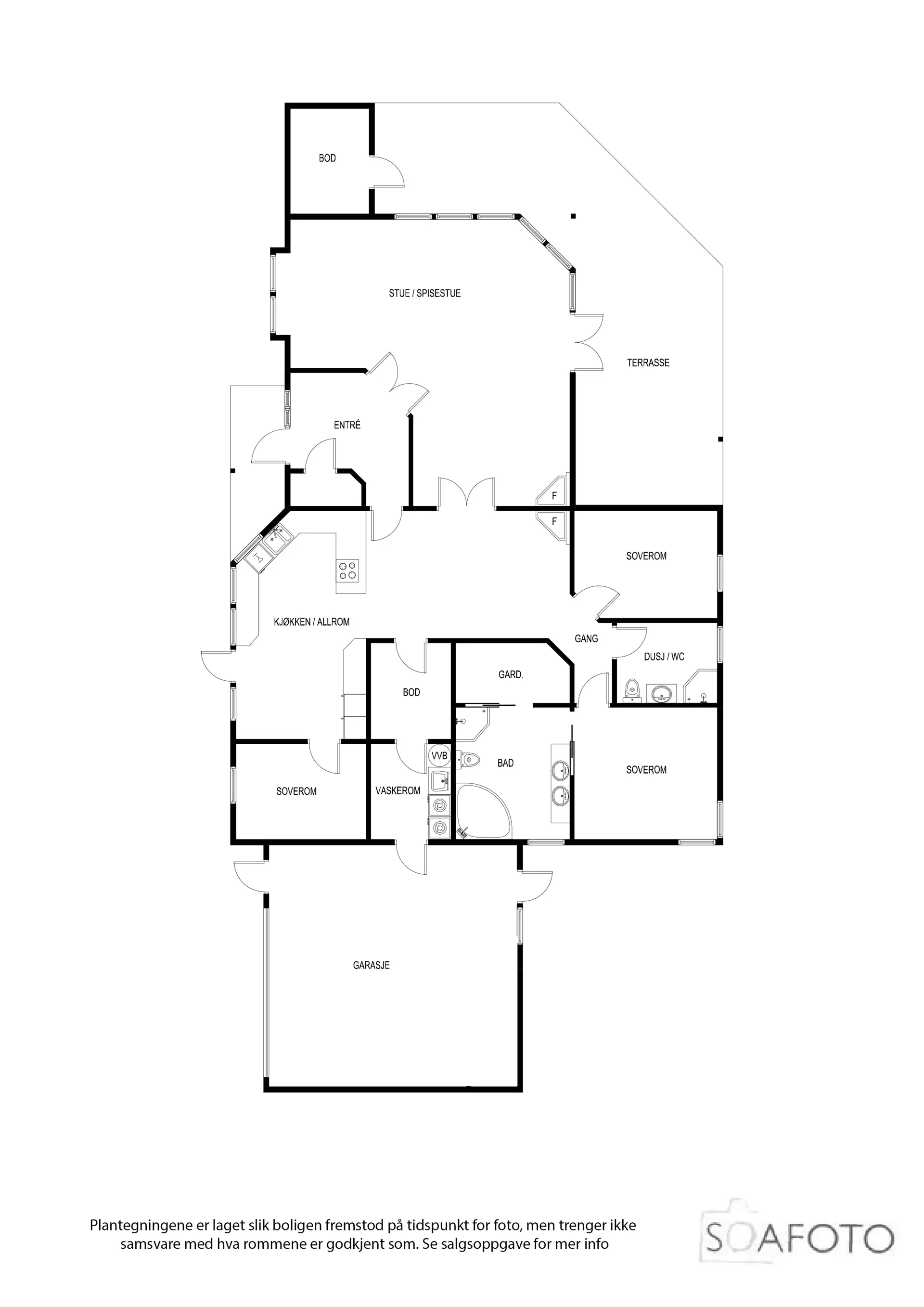 Tegninger stemmer med planløsning, bod på tegning foran vaskerom er å betrakte som gang jf.
